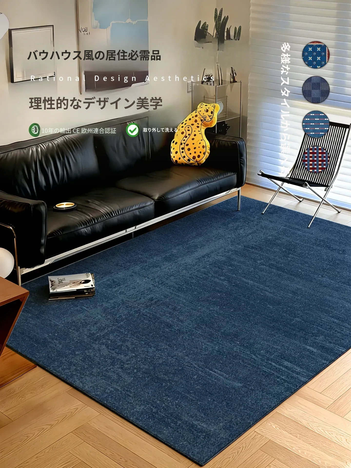 新作!ブルーの洗えるカーペット、バウハウススタイルのリビングや寝室に最適。ダブルレイヤーの滑り止め設計で、耐汚れ&高級感あふれるデザイン。お手入れ簡単で、快適な空間を演出します!