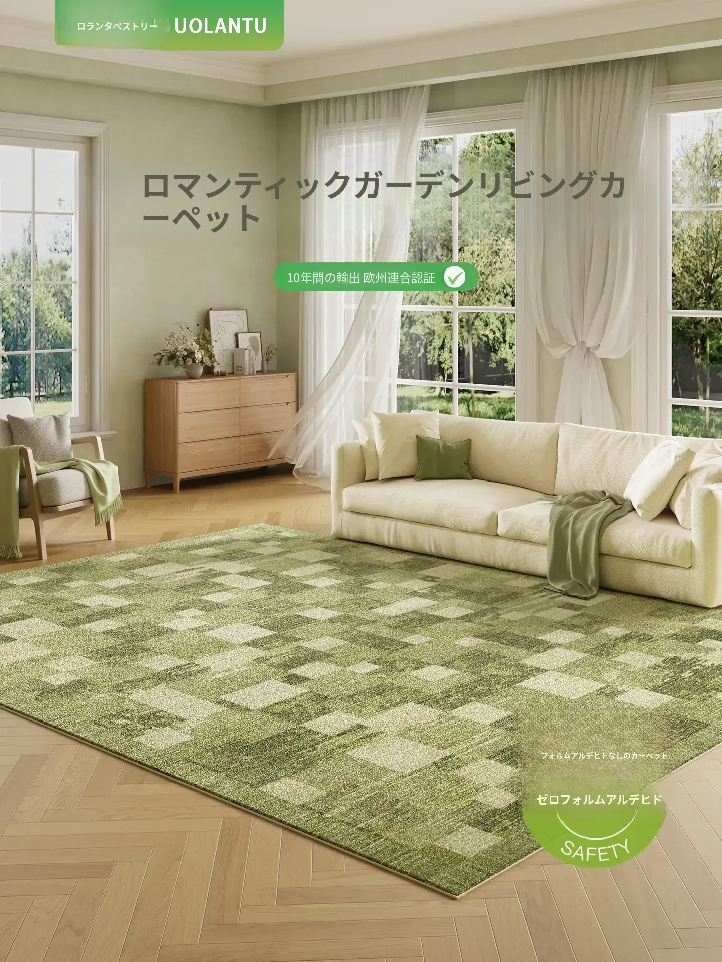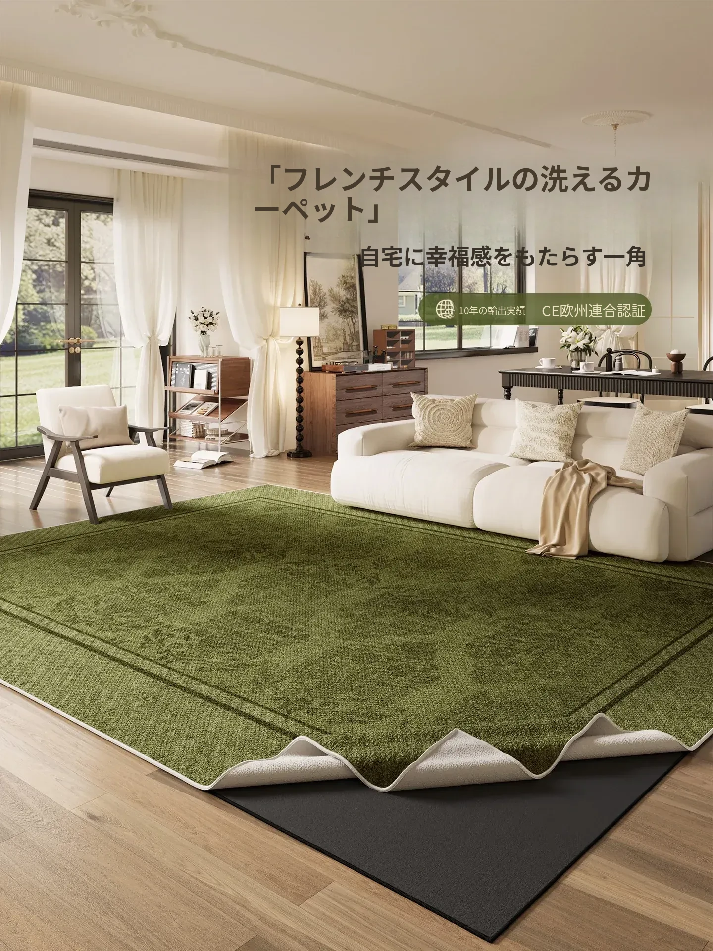 2025年新作!グリーンフレンチクリーム風ラグマット - お手入れ簡単で洗えない、リビングルームにぴったりの高級感漂うソファ&コーヒーテーブル用マット!