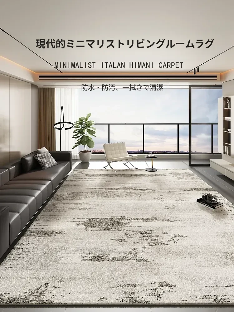 イタリアンミニマルデザインの防水&防汚ラグ - ソファやテーブルにぴったり!ふわふわの肌触りで、お手入れも簡単なベッドサイドマット。リビングや寝室に最適なアイテムです!