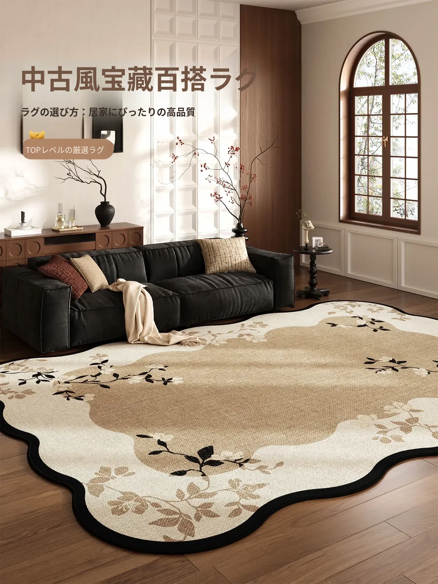 フランス風ヴィンテージリビングルームラグ 大面積防音滑り止めマット 防水防汚 ベッドサイドカーペット - お部屋を優雅に彩る高品質なインテリアアイテム!