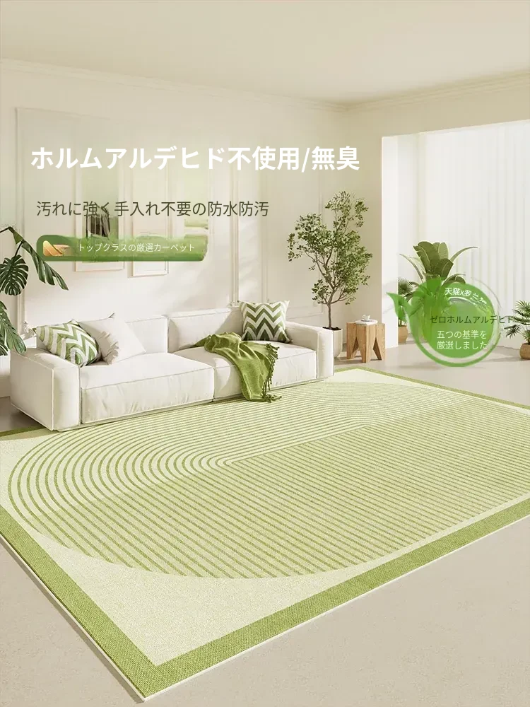 リビングルーム用クリーム色浅緑防水防汚カーペット、メンテナンス不要で高級感漂う2025年新作!お部屋をスタイリッシュに演出します。