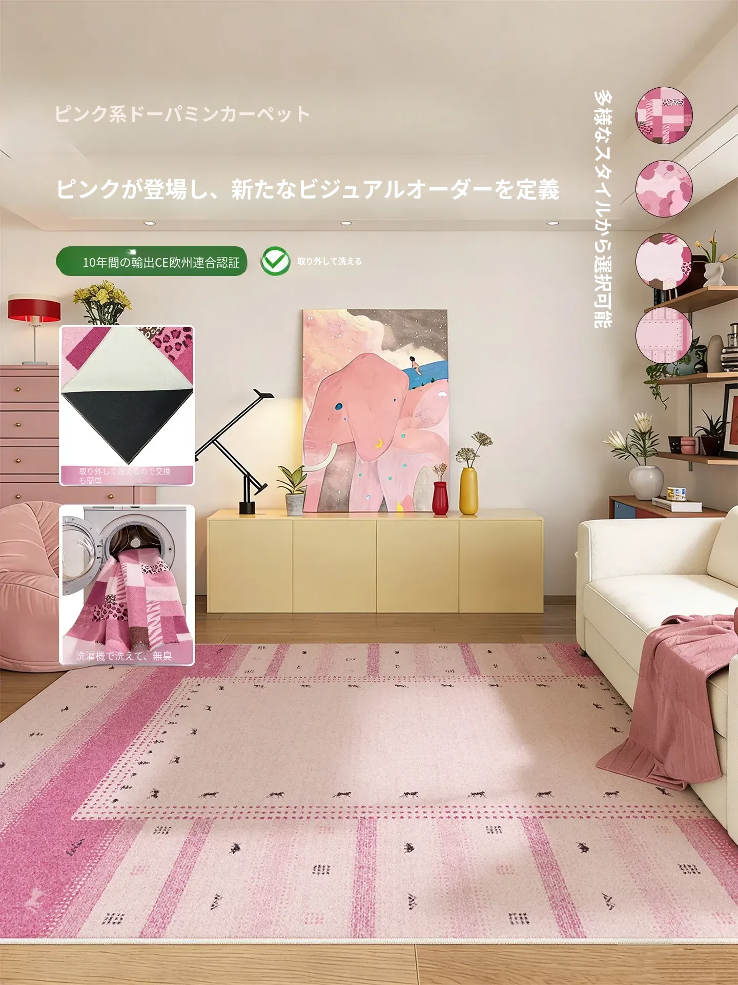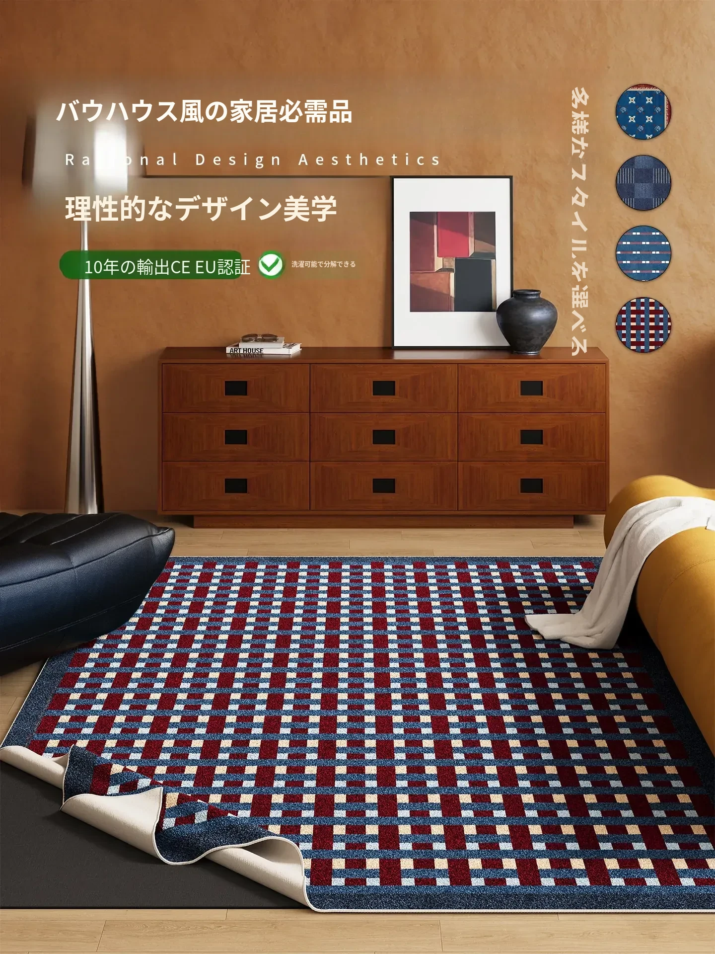 レトロなデザインの洗濯不要なカーペット!リビングやベッドサイドに最適な軽やかな高級感。手入れ不要で、ソファにぴったりフィット。上質な空間を演出する、あなたの生活を彩る一枚です!