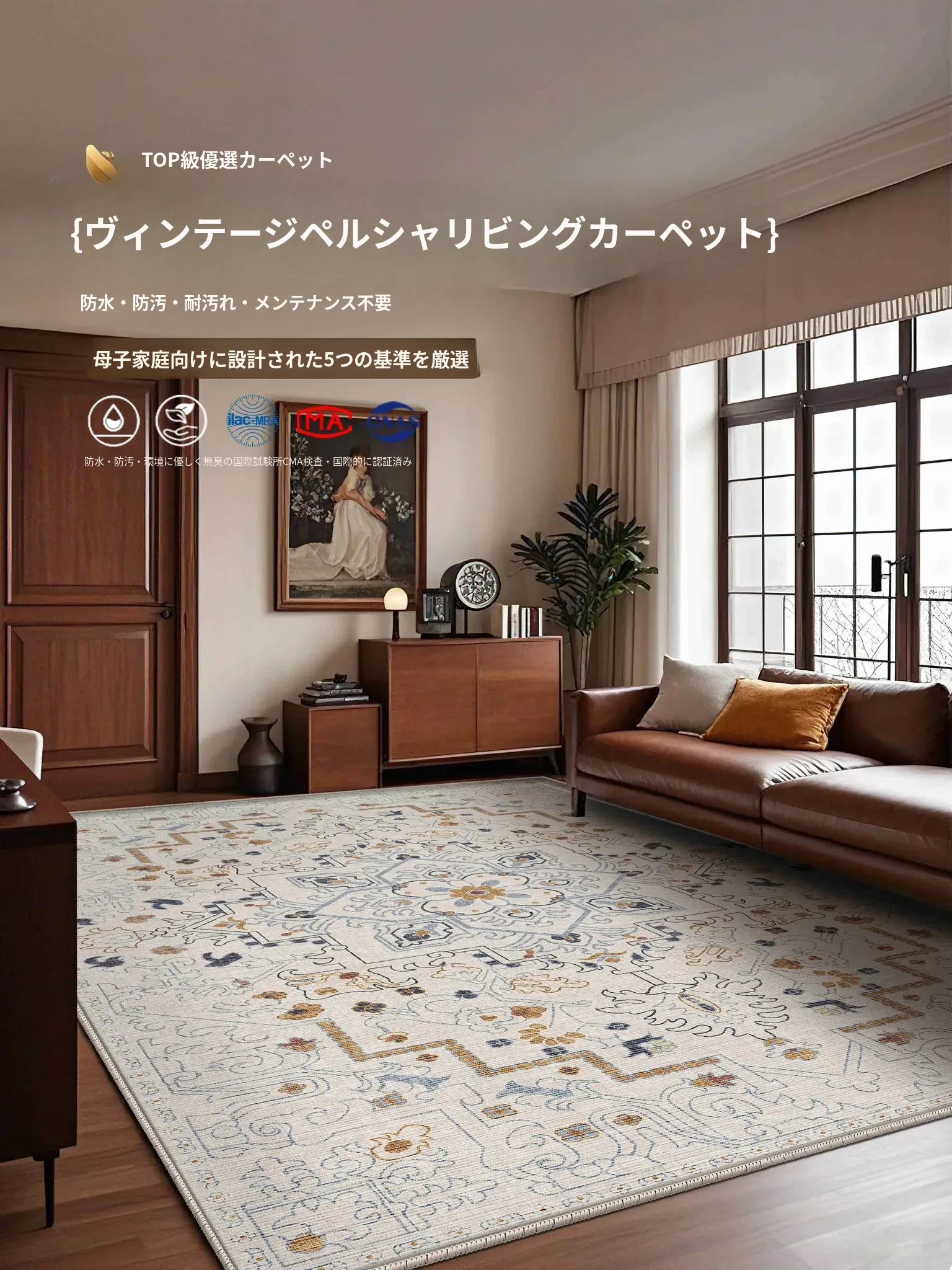 2024年新款軽奢感溢れる高級防水防汚カーペット!リビングやソファ・テーブル下に最適。滑り止め付きでお手入れ簡単、ベッドサイドにもぴったり!おしゃれな空間を演出します。