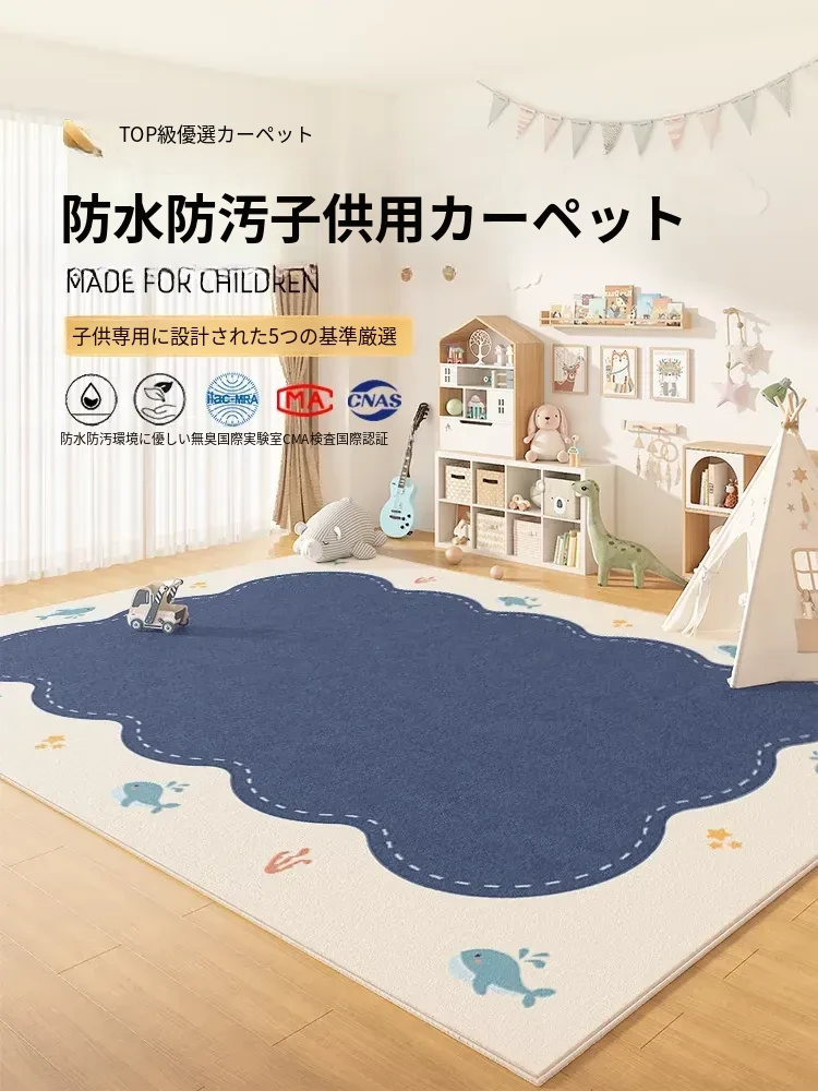 子供部屋やリビングに最適!お手入れ簡単、撥水・防音機能付きのカーペット。かわいいキャラクターデザインで、読書エリアやプレイスペースを楽しく演出します。