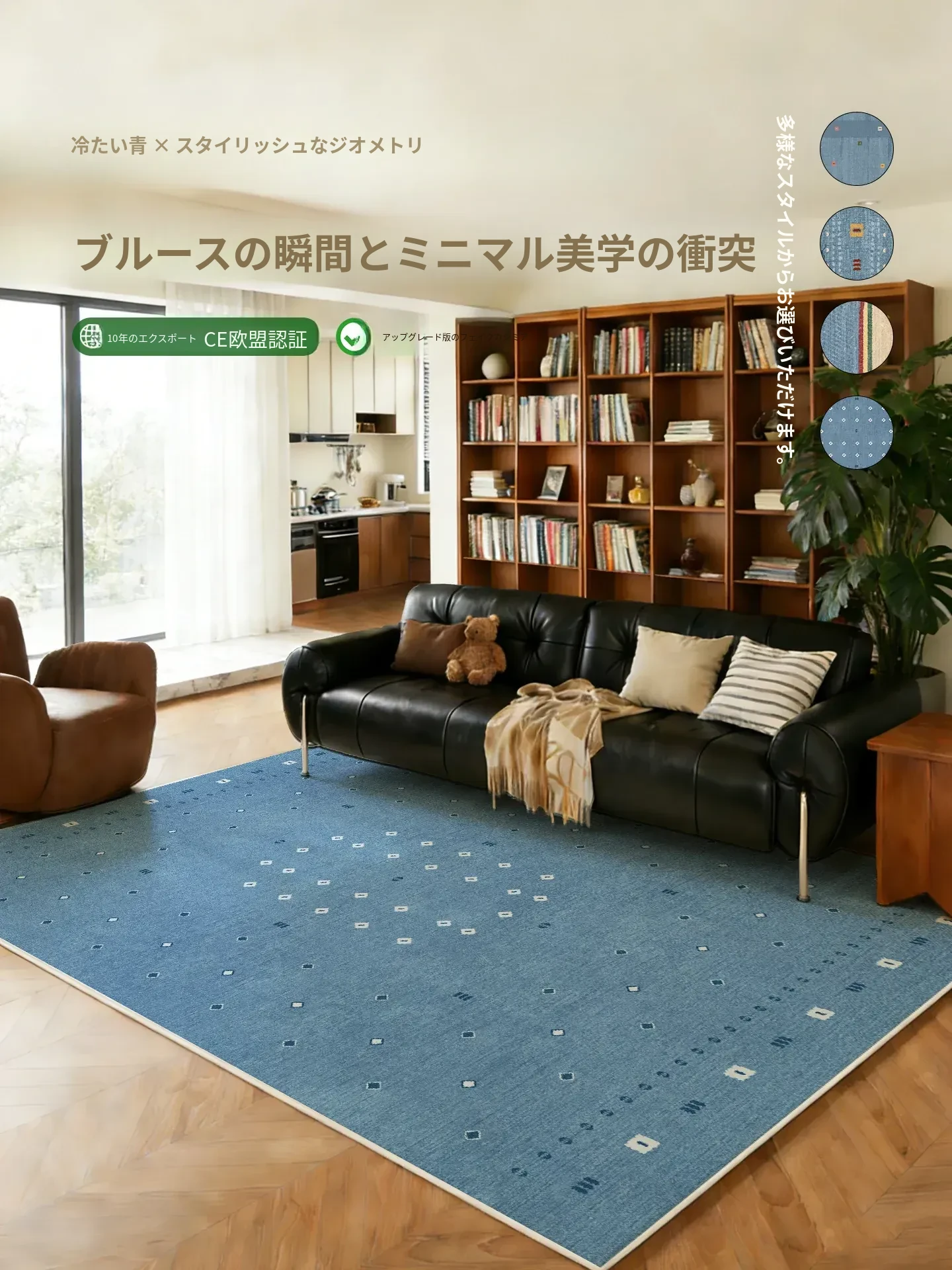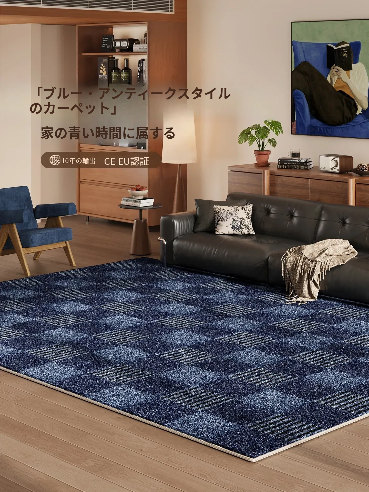 リビングルーム用のアンティーク風ブルーカーペット、洗浄不要&お手入れ簡単!ソファやベッドサイドにぴったりな多バイオレットデザイン。おしゃれなバウハウススタイルで、快適な空間を演出します!