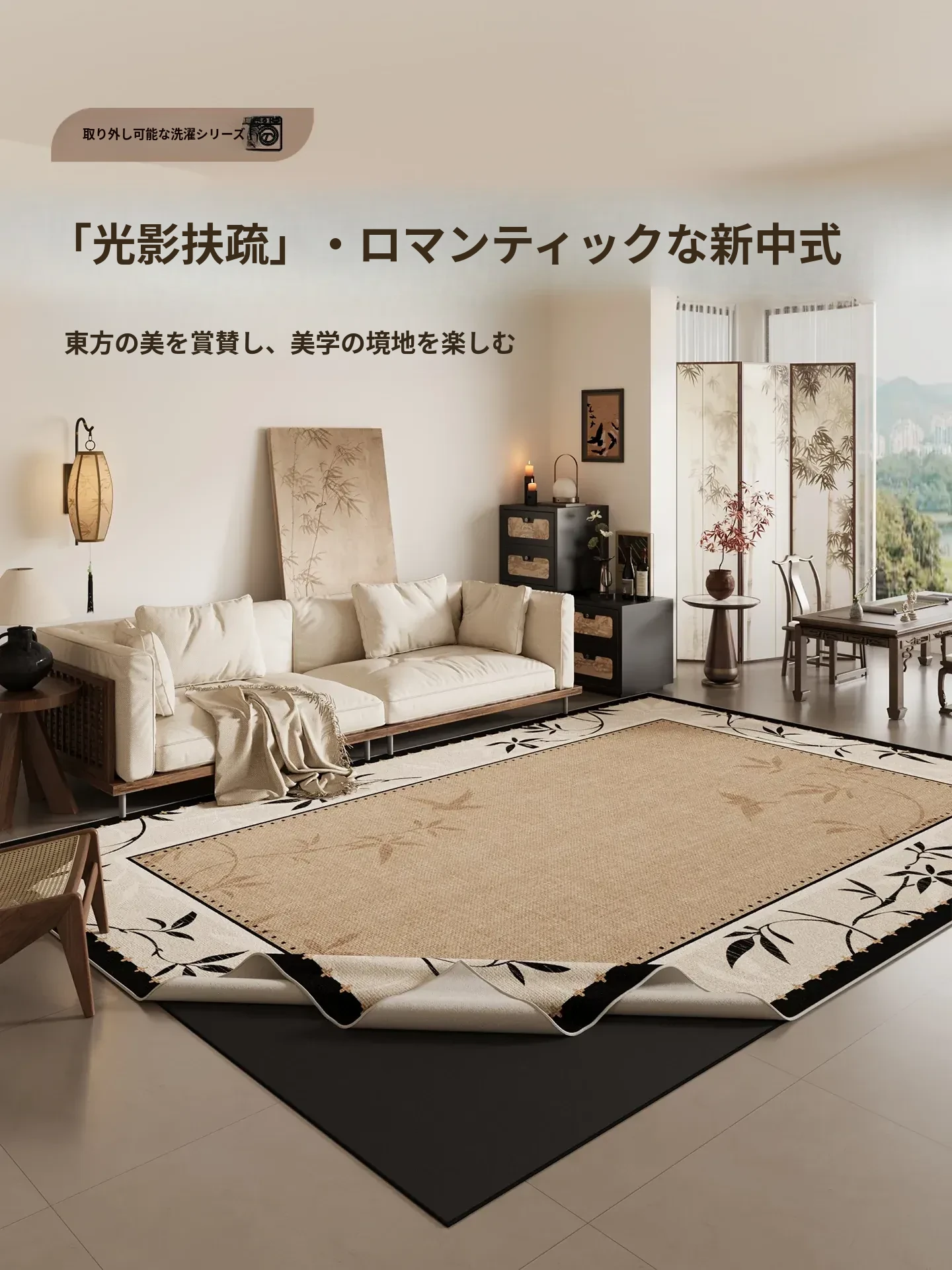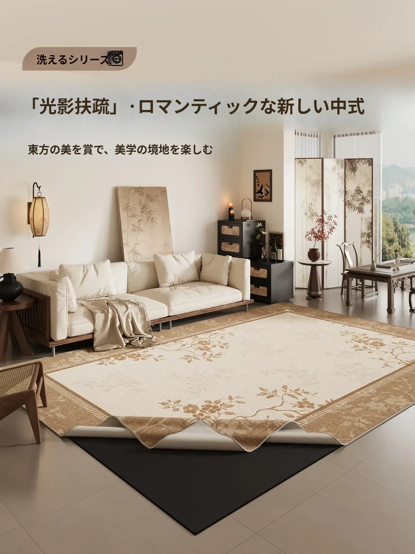 洗える!中華風デザインのリビング・寝室用ラグマット。手入れ簡単で、ソファやテーブルにもピッタリ。2025年新作、清潔感あふれる空間を演出します!