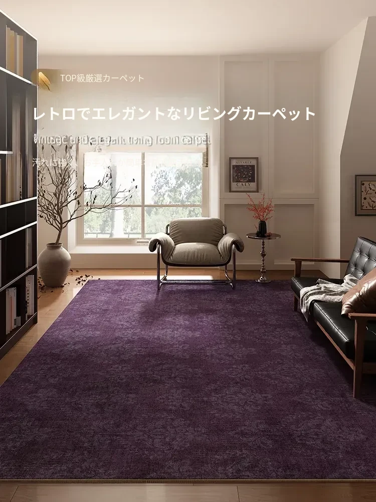 高級感あふれる紫色のラグマット!リビングに最適なティーテーブルやソファとの相性抜群。お手入れ不要で、軽く拭くだけで清潔に保てます。ヴィンテージ風で防水機能付き。あなたの空間を格上げする一品です!