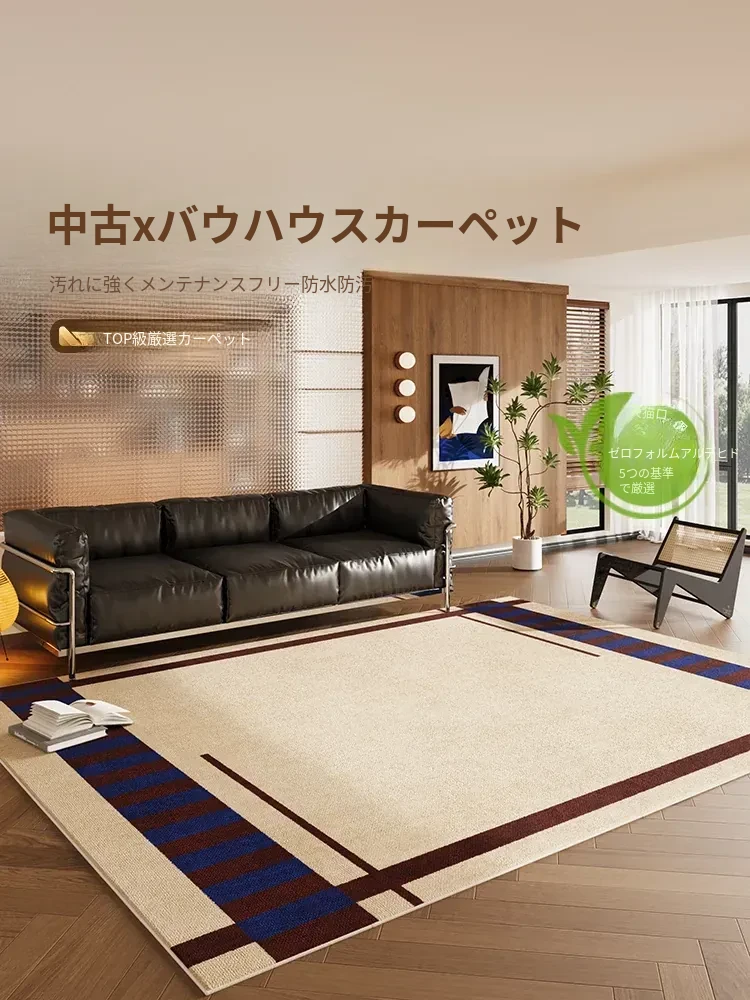 バウハウススタイルのリビングルームラグ!ヴィンテージ風のコーヒーテーブルやソファにぴったり。防水・防汚機能付きでお手入れ簡単。新作のルームマットで、寝室やリビングをおしゃれに演出!