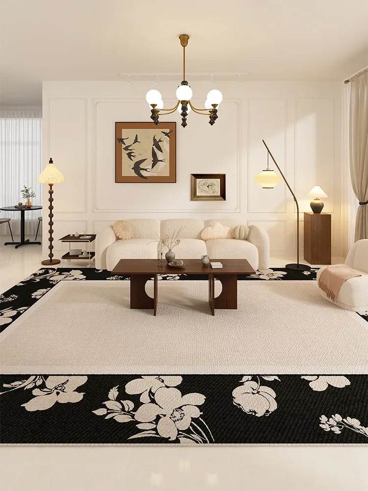フレンチクリーム風リビングカーペット、ラグジュアリーな寝室用フットマット、防水・汚れ防止、メンテナンス不要のソファ・テーブル用マット、新作登場!快適さとスタイルを両立したお部屋作りに最適!