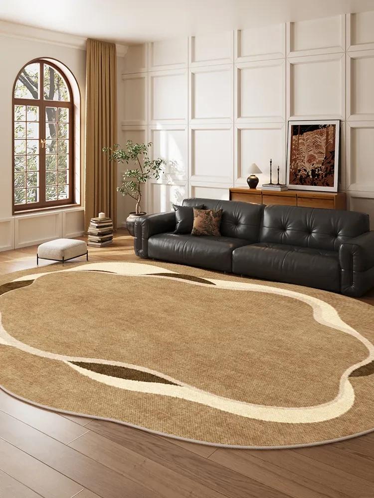 フランス風ヴィンテージデザインのリビングルームラグ - 高級感あふれる不規則な形状、寝室やソファ、テーブルに最適!防水でお手入れも簡単。おしゃれな空間を演出します。