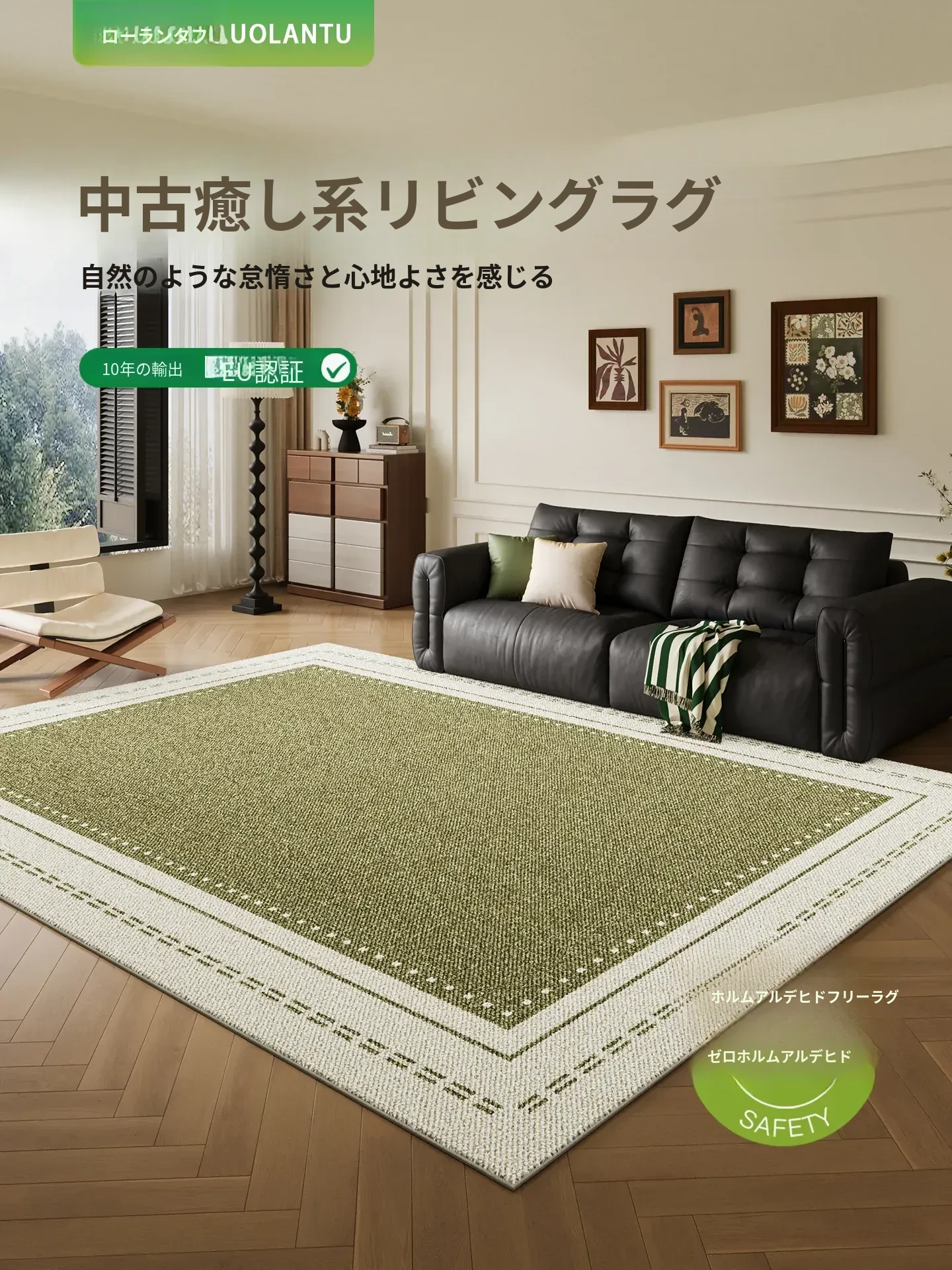 防水・防汚のグリーンカーペット!お手入れ不要で、リビングやベッドサイドにぴったり。2025年新作のレトロデザインで、おしゃれな空間を演出します。