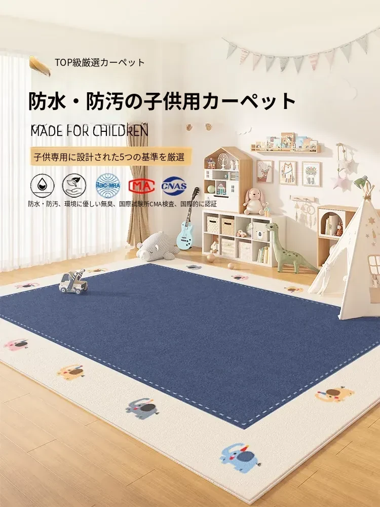 カラフルなキャラクターの子供部屋用カーペット!リビングや読み聞かせエリアに最適な防水・防汚マット。お手入れ不要で、音を吸収し、安心して遊べる快適空間を提供します!