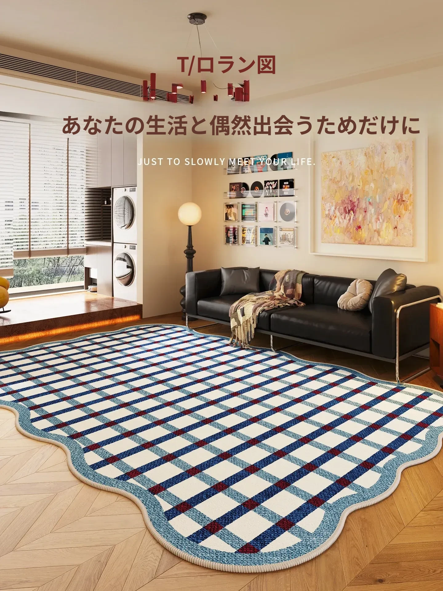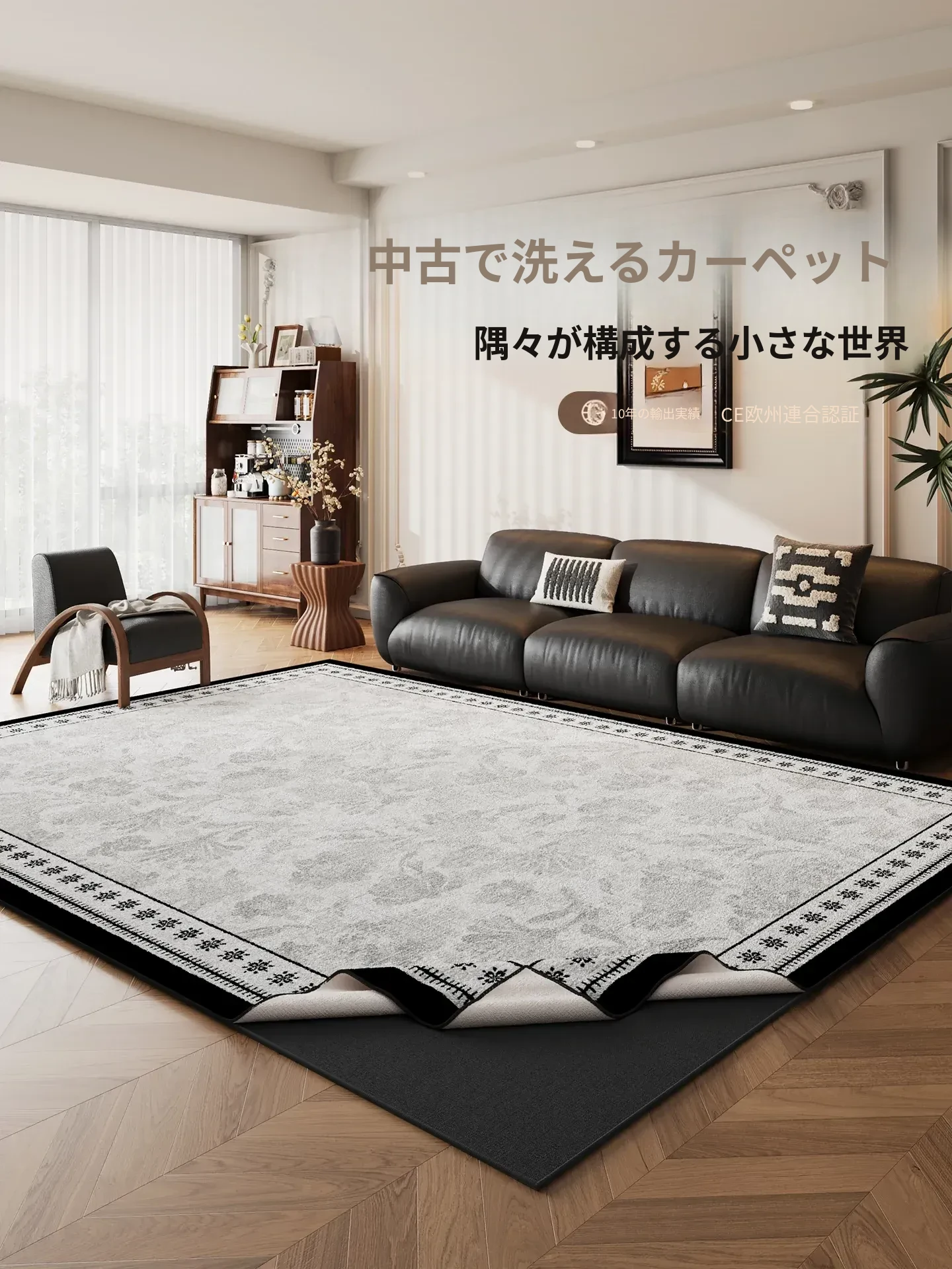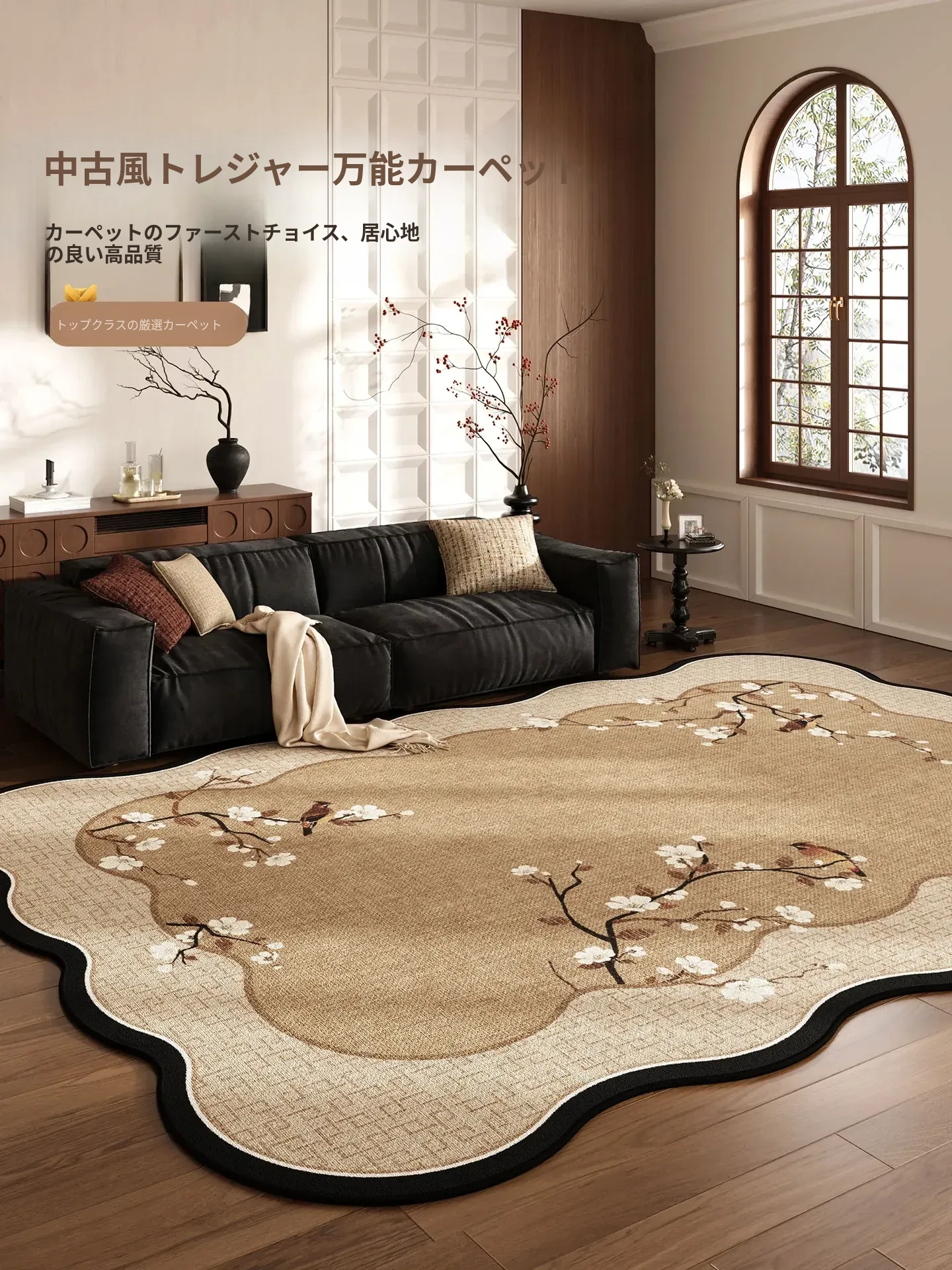 2025年新作!洗わずに使える新中式デザインのラグ、リビングにぴったり。お手入れ簡単で、ソファやテーブルに最適な高級感あふれる異形マット!