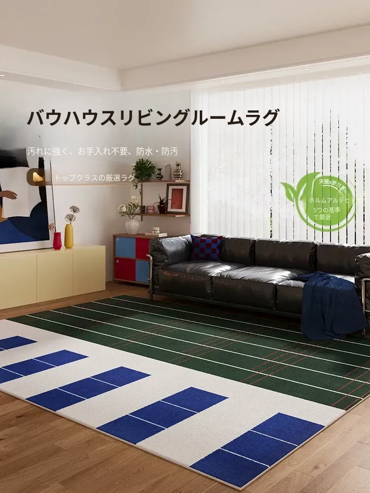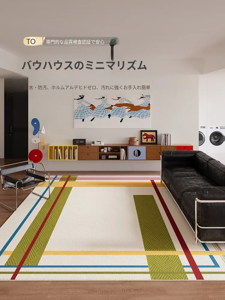 おしゃれなバウハウス風のレトロカーペット!リビングや寝室に最適なデザイン。洗濯不要で簡単に拭き取れ、防水機能付き。高級感あふれるシンプルなアメリカンスタイルで、ソファやテーブルを引き立てます。