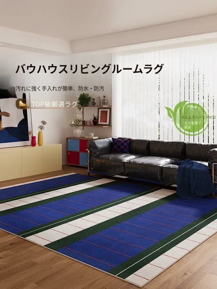 新作!防水防汚の大面積ブルーカーペット、リビングソファ下にピッタリ!ボヘミアンスタイルでおしゃれな空間を演出。バウハウスデザインのベッドサイドマットで、快適な生活を手に入れましょう!