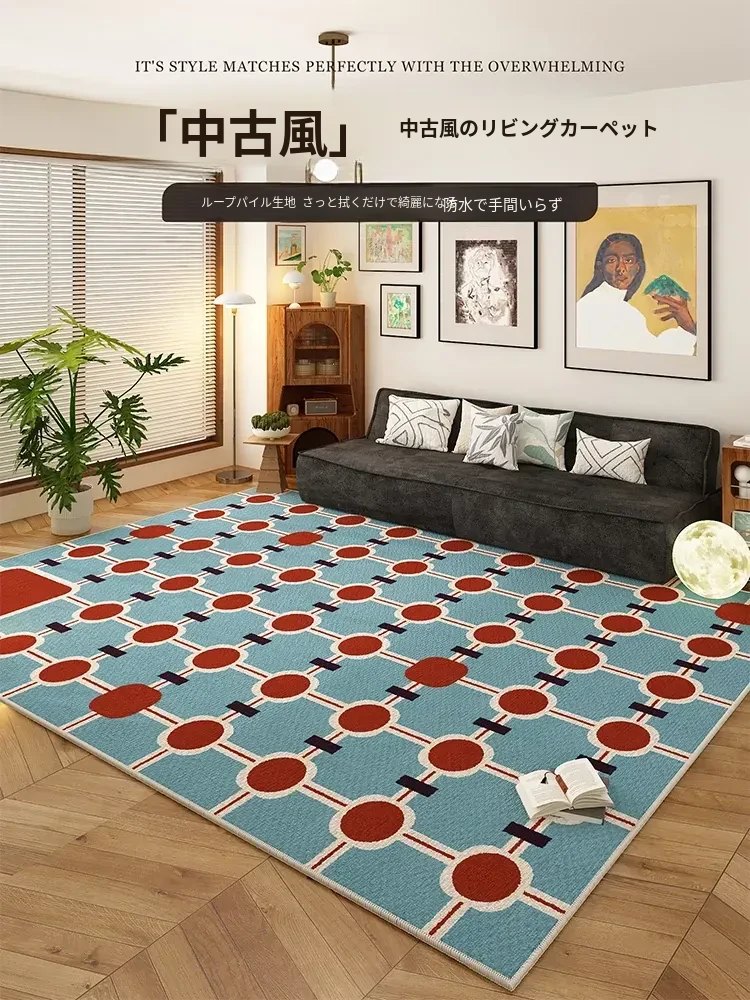 バウハウススタイルのリビングカーペット - シンプルなソファやコーヒーテーブルにぴったり!防水・汚れ防止機能付き、手間いらずのレトロデザインで、アメリカンハイエンドの雰囲気を演出します。寝室にも最適!