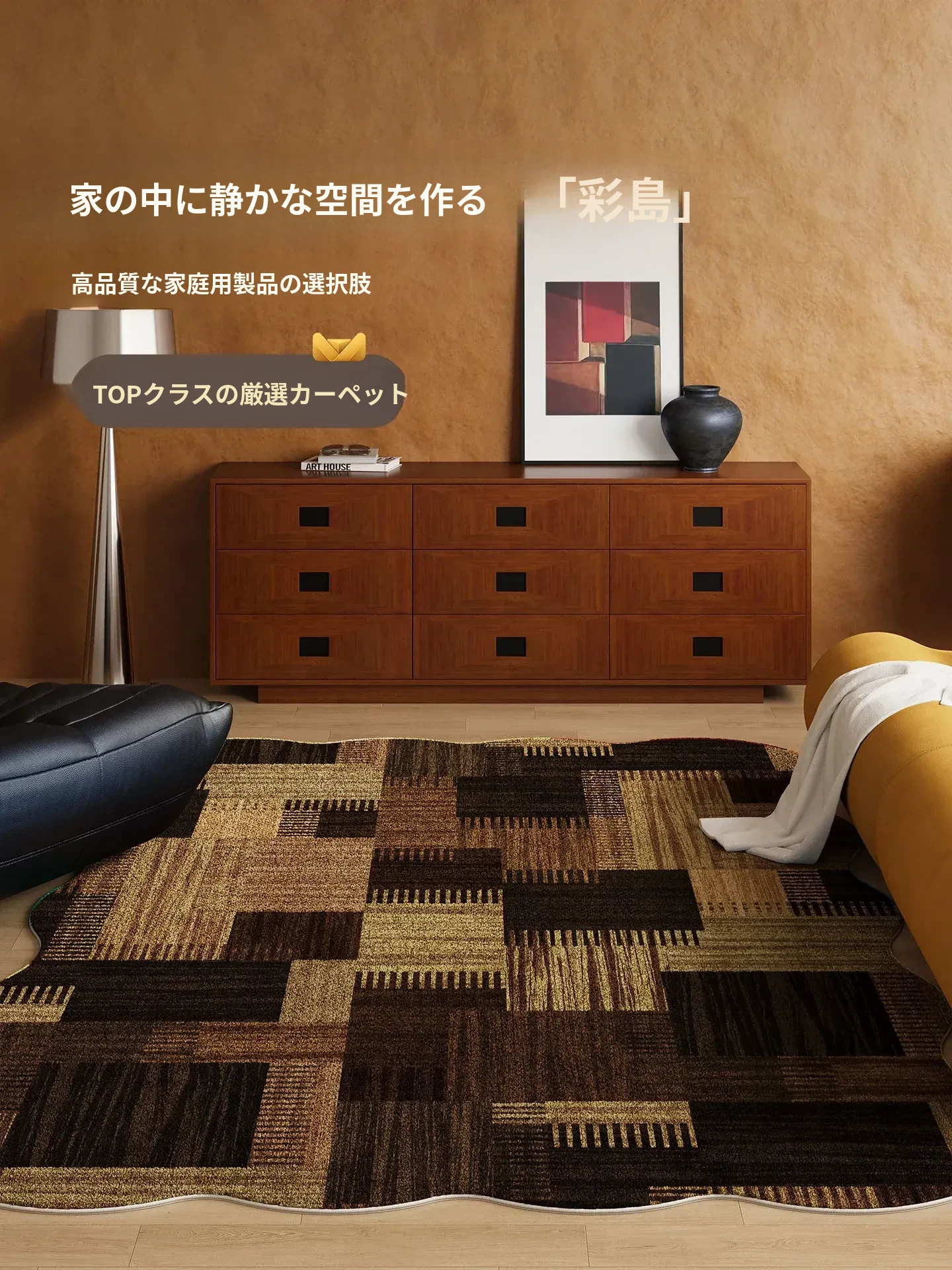 2025年新作!中古風デザインのリビング用カーペット&ソファセット、テーブルマット付き。お手入れ簡単で、ベッドサイドにも最適。広いスペースを快適にカバーする、魅力的なインテリアアイテム!