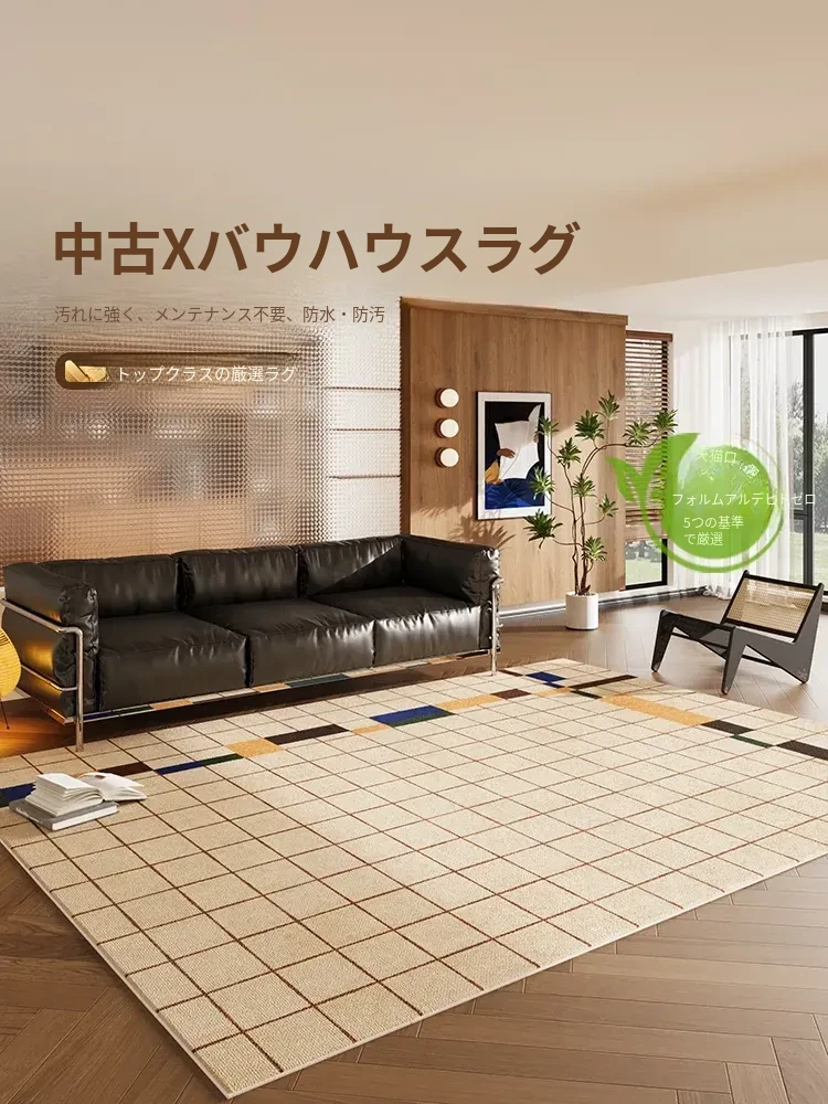 新作!防水防汚の中古風リビングカーペット - テーブルやソファに最適!バウハウススタイルの部屋や寝室にもぴったり。お手入れ簡単で洗わずに使える便利なアイテムです!