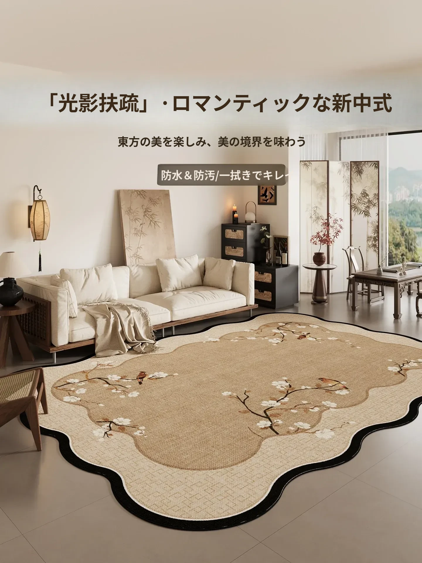 リビングルームに最適な高級感あふれる防水・防汚ラグ!ソファやテーブルの下にぴったり、手間いらずでお手入れ簡単なベッドサイドマット。おしゃれな空間を演出します!