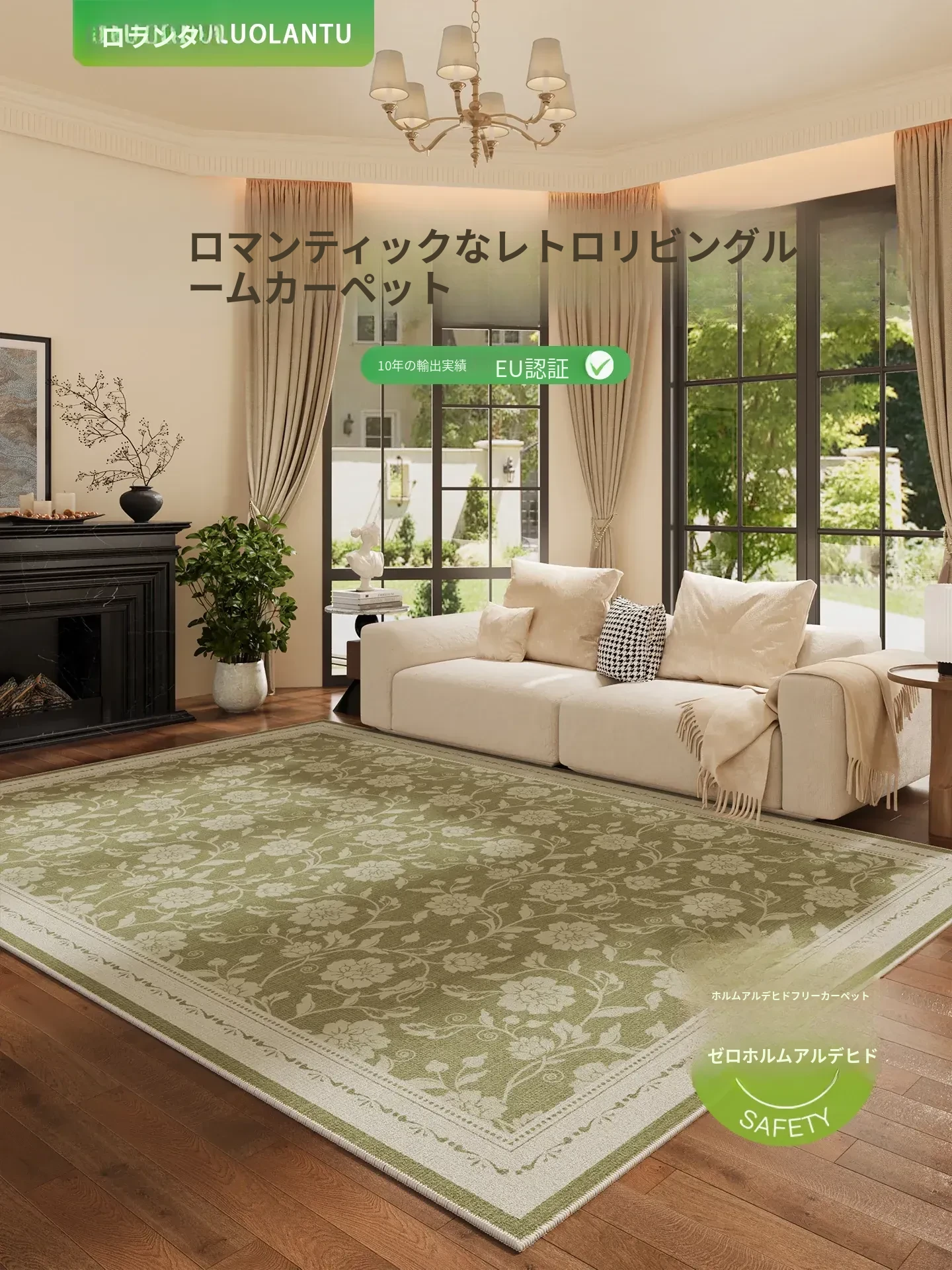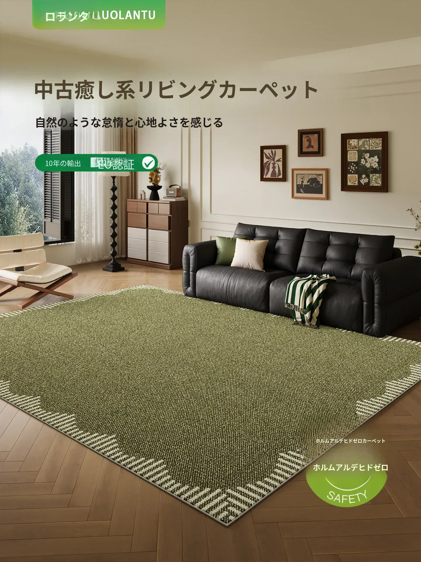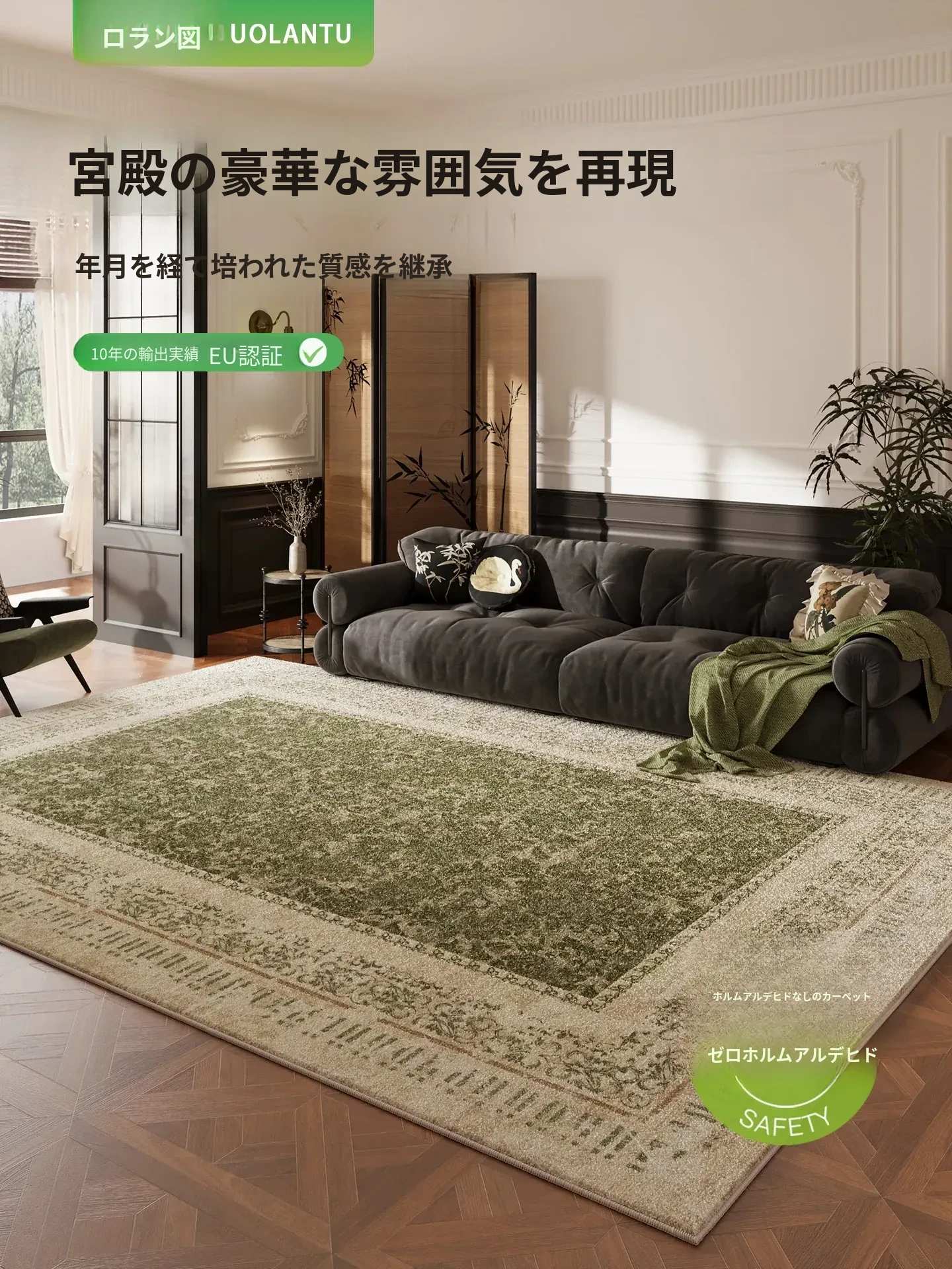 2025年新作!お手入れ簡単なレトロデザインのグリーンカーペット - 防水・防汚機能付きで、リビングやベッドサイドにぴったりな中古風マット!おしゃれな空間を演出します。