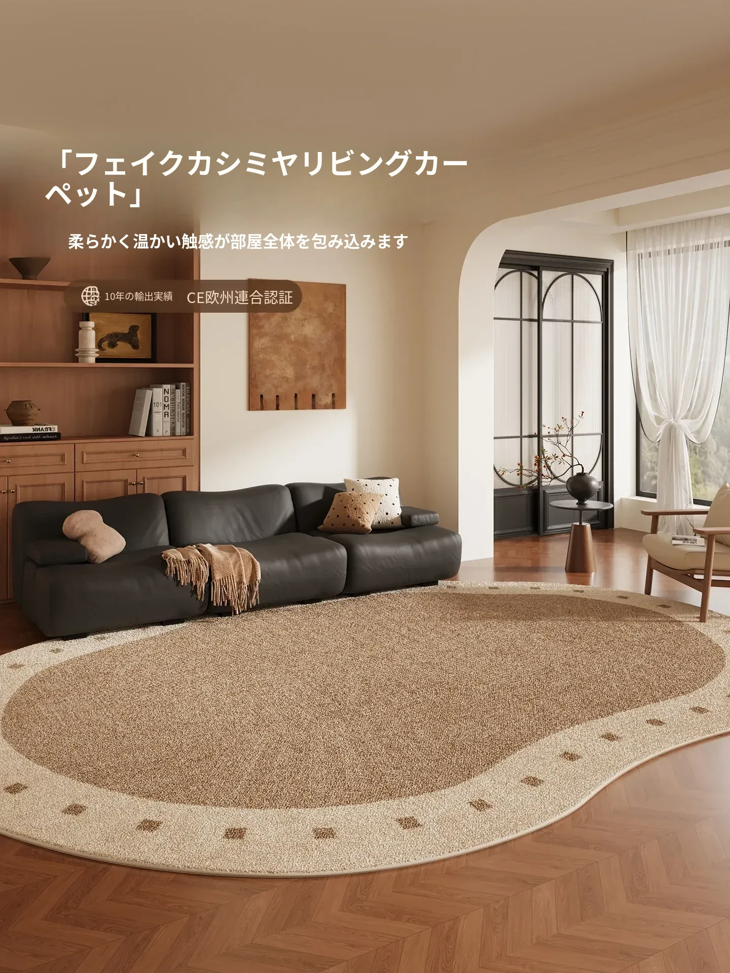 イタリアンミニマルデザインの防水防汚ラグ、秋冬にぴったり!リビングや寝室、ソファやテーブルにも最適な2025新作毛足の長いふわふわラグで、温かみのある空間を演出します。