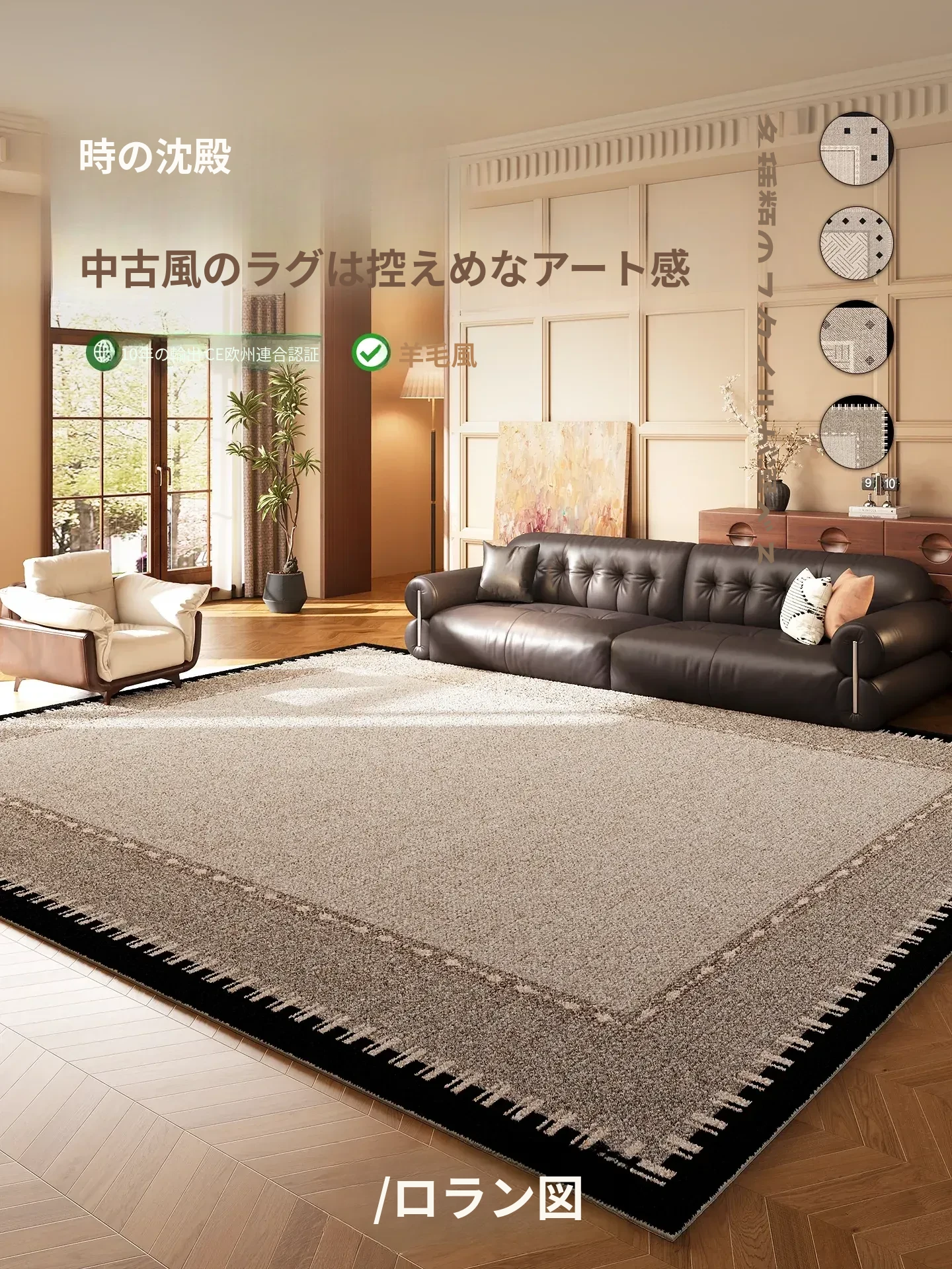 おしゃれなアンティーク風カーペット!リビングや寝室に最適、洗濯不要でお手入れ簡単。ソファやテーブルの下にぴったり、厚手で防音効果もあり滑り止め付き。快適な空間を演出します!
