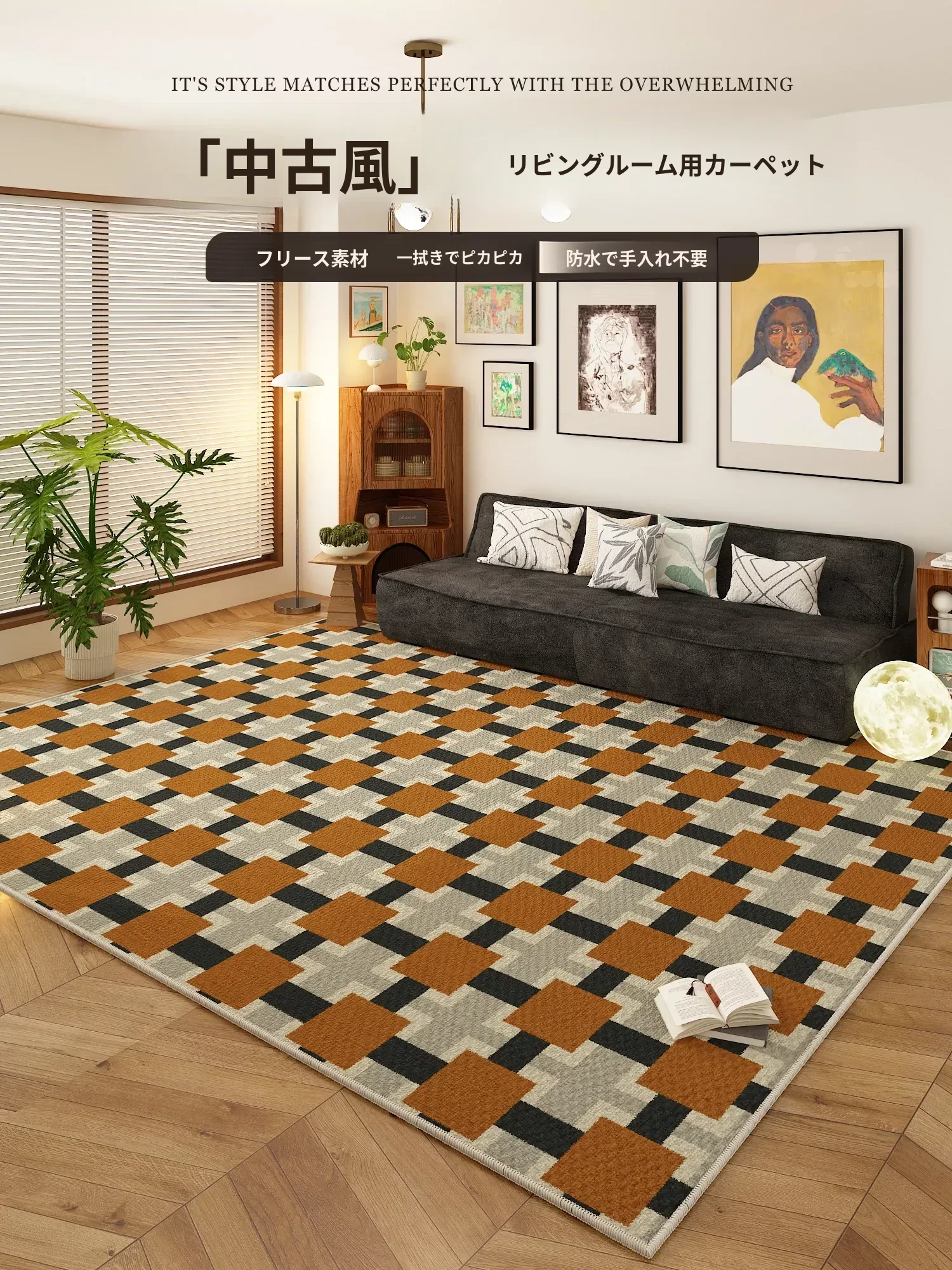 バウハウス風ヴィンテージラグ 防水・汚れ防止のリビング用マット 2025年新作!お手入れ簡単で、ソファやコーヒーテーブルに最適なデザイン。おしゃれで機能的な空間を演出します!
