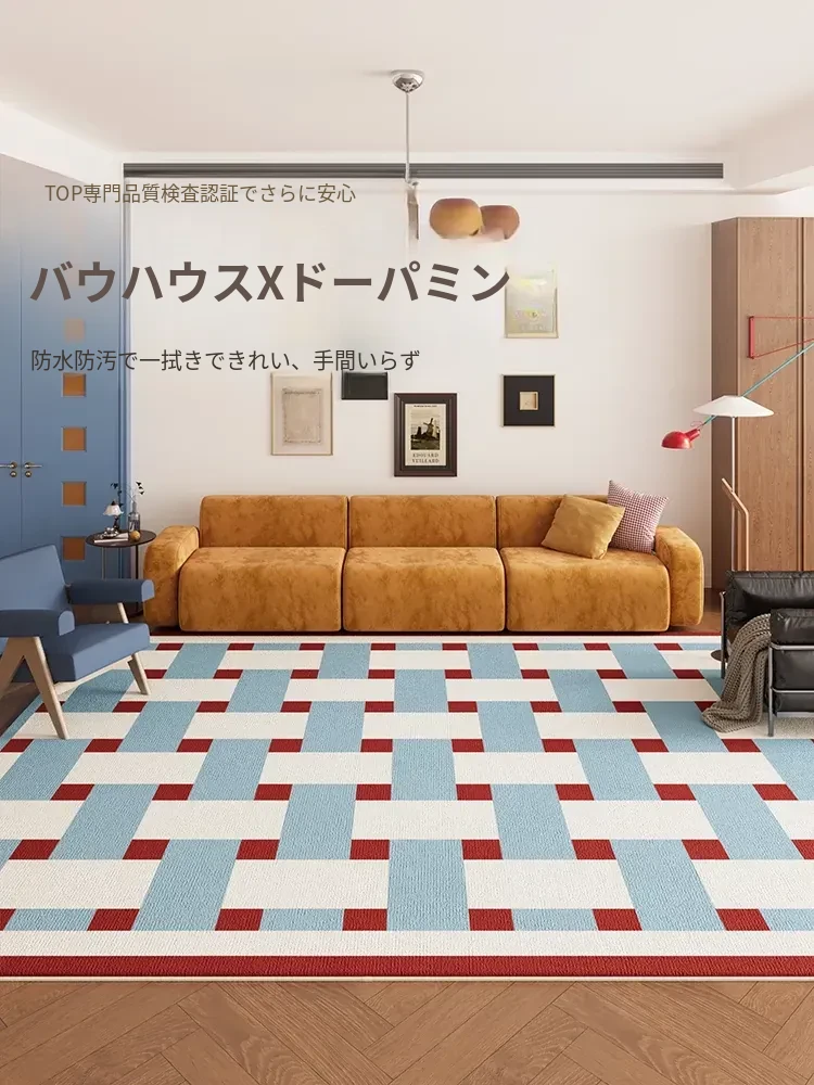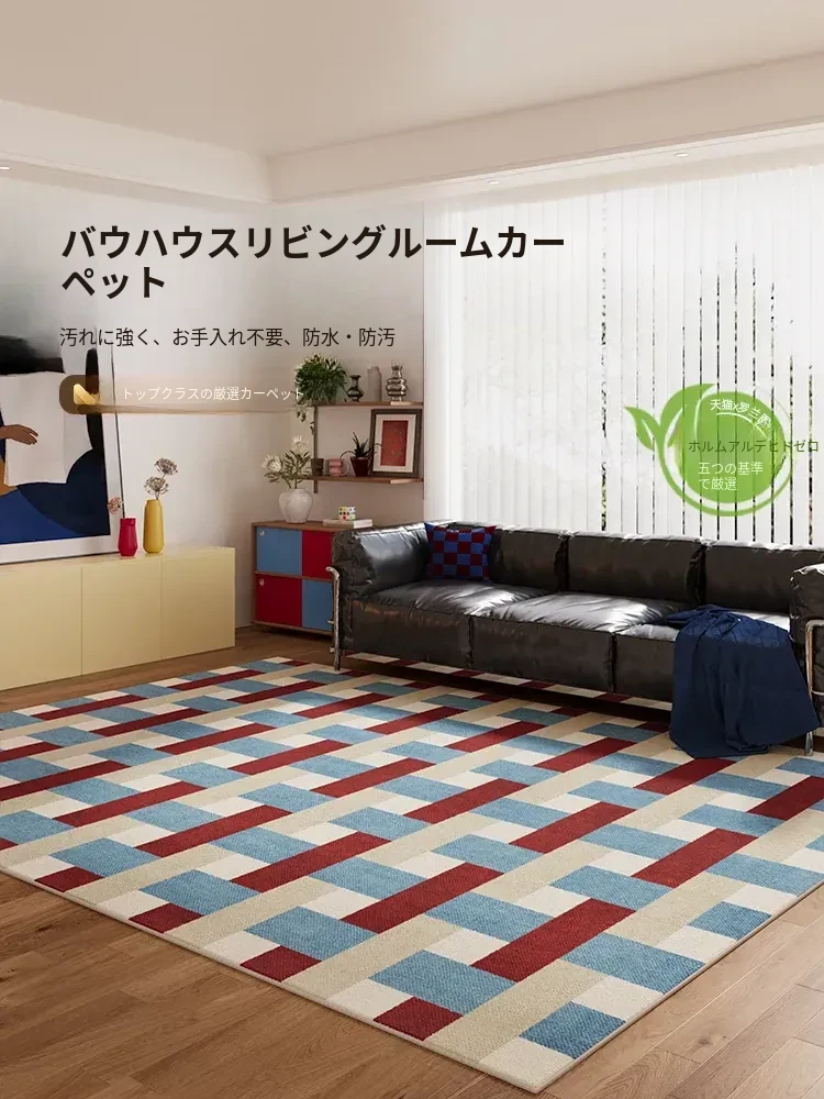 カラフルなリビングルームラグ - ミニマリストソファとコーヒーテーブルにぴったり!バウハウススタイルの防水・お手入れ簡単なレトロデザイン、洗練された新作で快適な空間を実現!