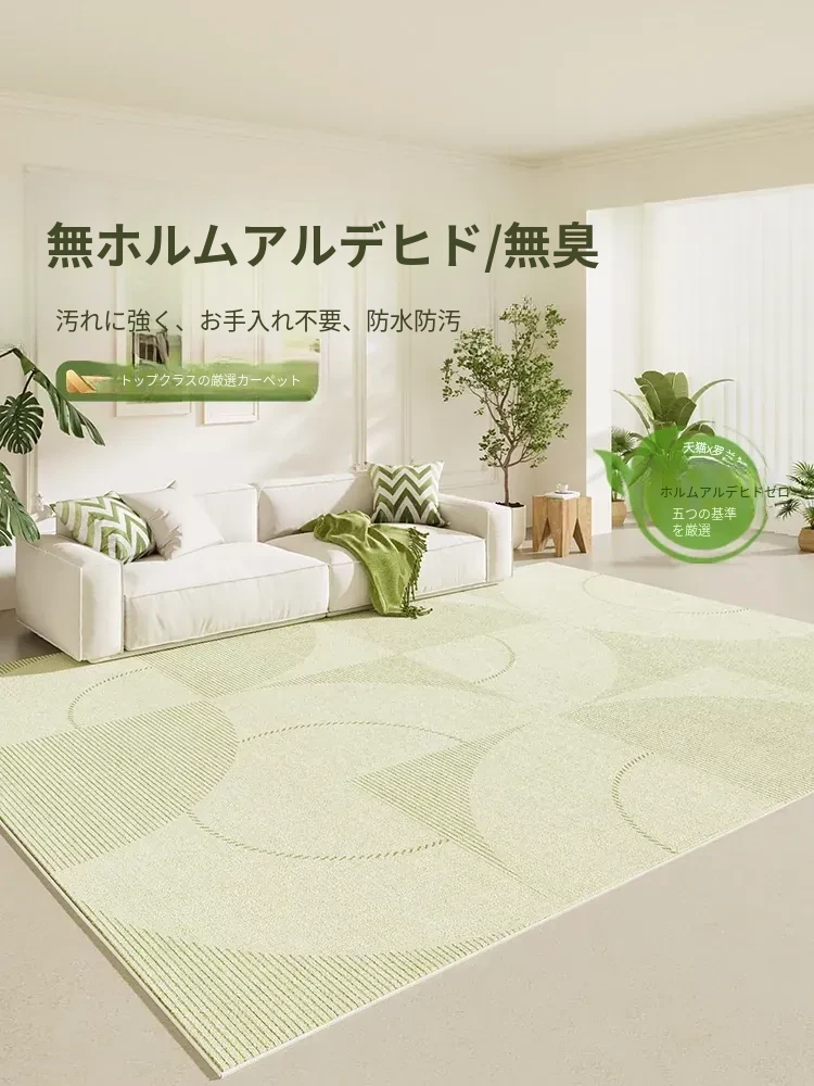 新作!2025年最新デザインの浅緑色ラグマット。リビングや寝室にぴったり!クリーミーな風合いで防水・防汚機能付き。お手入れ簡単&洗濯不要のソファ用マットで、快適な空間を演出します。