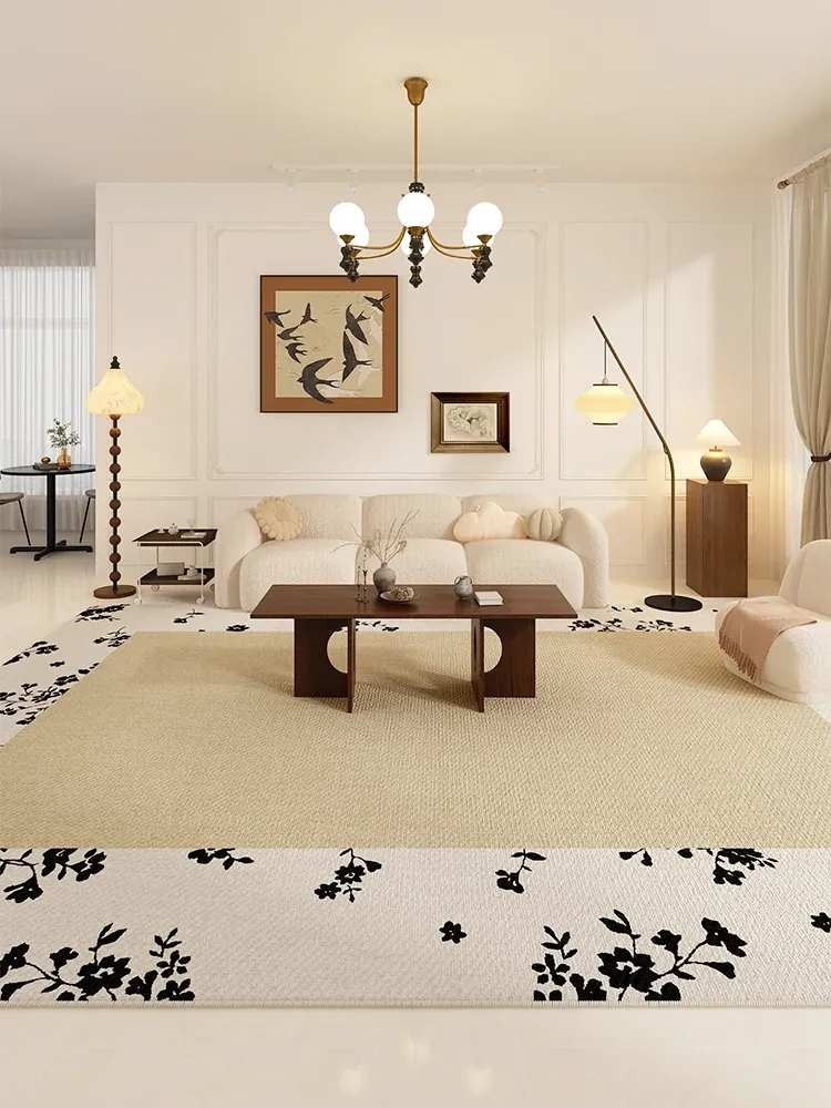 防水・お手入れ不要!モダンフレンチスタイルのリビングカーペット - 寝室やソファ、テーブルにぴったり!新作登場、簡単に拭けるのでお掃除もラクラク!