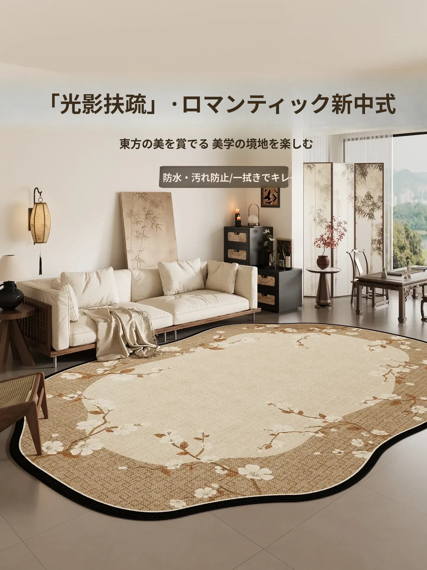 お手入れ不要!中華風デザインの防水ラグマット - 洗浄不要で、汚れに強い!リビングや寝室にぴったりの新作ソファマット。独特な形状で、おしゃれな空間を演出します。