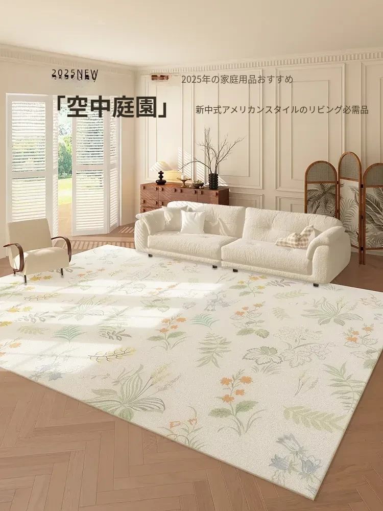 新中式スタイルの防水・防汚リビング用ラグマット - アンティークリネン風デザイン、手入れ不要で心地よい居心地を演出。ベッドサイドやソファにぴったりな最新アイテム!