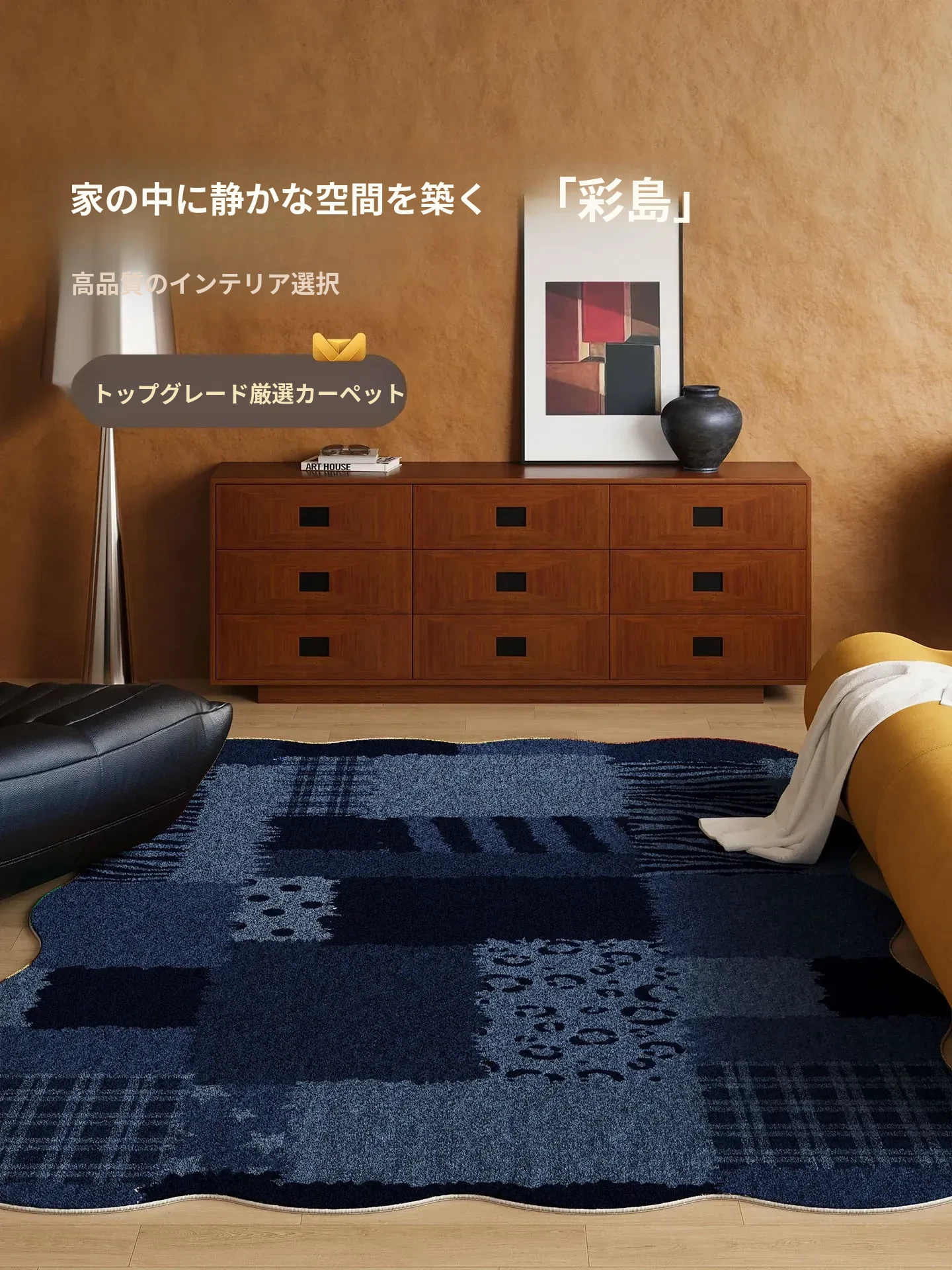 新作!防水防汚の大面積ブルーカーペット、リビングソファ下にピッタリ!ボヘミアンスタイルでおしゃれな空間を演出。バウハウスデザインのベッドサイドマットで、快適な生活を手に入れましょう!