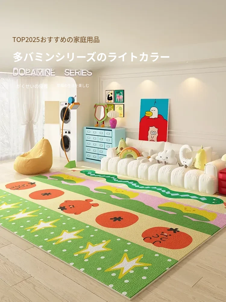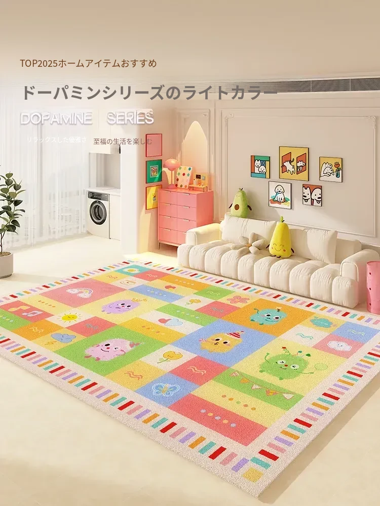ドーパミンカーペット|カラフルなキャラクターでお部屋を華やかに!リビング・寝室にぴったりの毛足の長いフロアマット。秋冬も暖かく、撥水・防汚機能付きでお手入れも簡単。女の子の夢の空間を演出します!