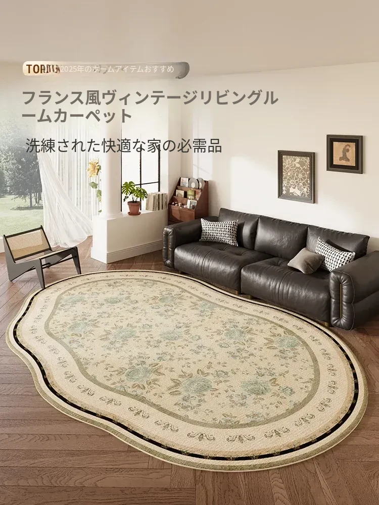 アメリカンスタイルの防水・防汚ラグ!リビング、異形ソファ、コーヒーテーブルに最適。2025年の新作、ヴィンテージ感漂う高級デザイン。お手入れ簡単で、寝室にもぴったりなマットです!