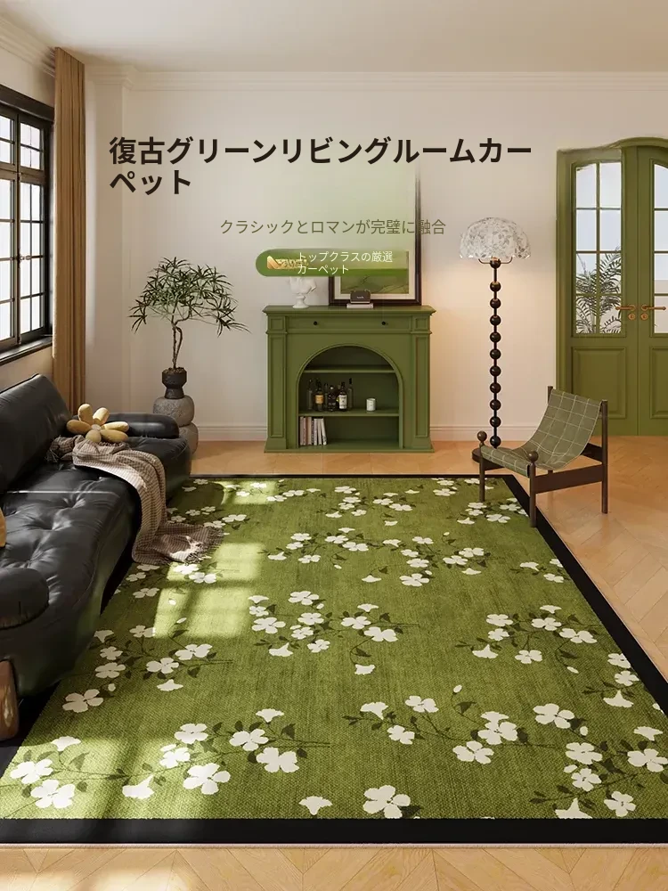 2025年新作!グリーンフレンチカーペット - アメリカンクリームスタイルのリビングにぴったり!お手入れ不要、洗浄可能、防水・防汚設計で、いつでも清潔感を保てます。おしゃれで実用的なマットで、お部屋を華やかに演出しましょう!