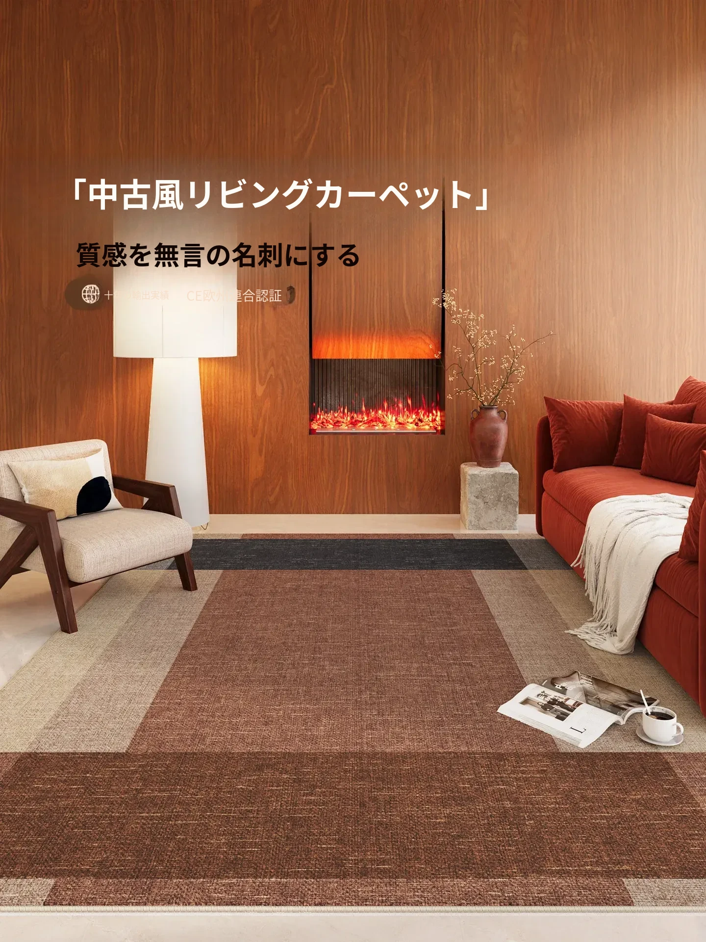 高級感溢れる中古風リビングカーペット!ソファやコーヒーテーブルにぴったり。お手入れ不要で、防水・防汚仕様の寝室ベッドサイドマット。おしゃれで実用的な一品をぜひ!