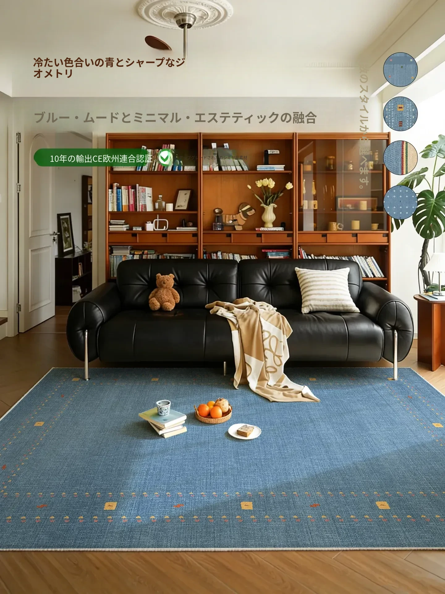 中古風カーペット リビングルーム用 ドーパミンを感じるベッドサイドマット ブルー バウハウススタイル 防水・洗浄不要のお手入れ簡単なアイテム!