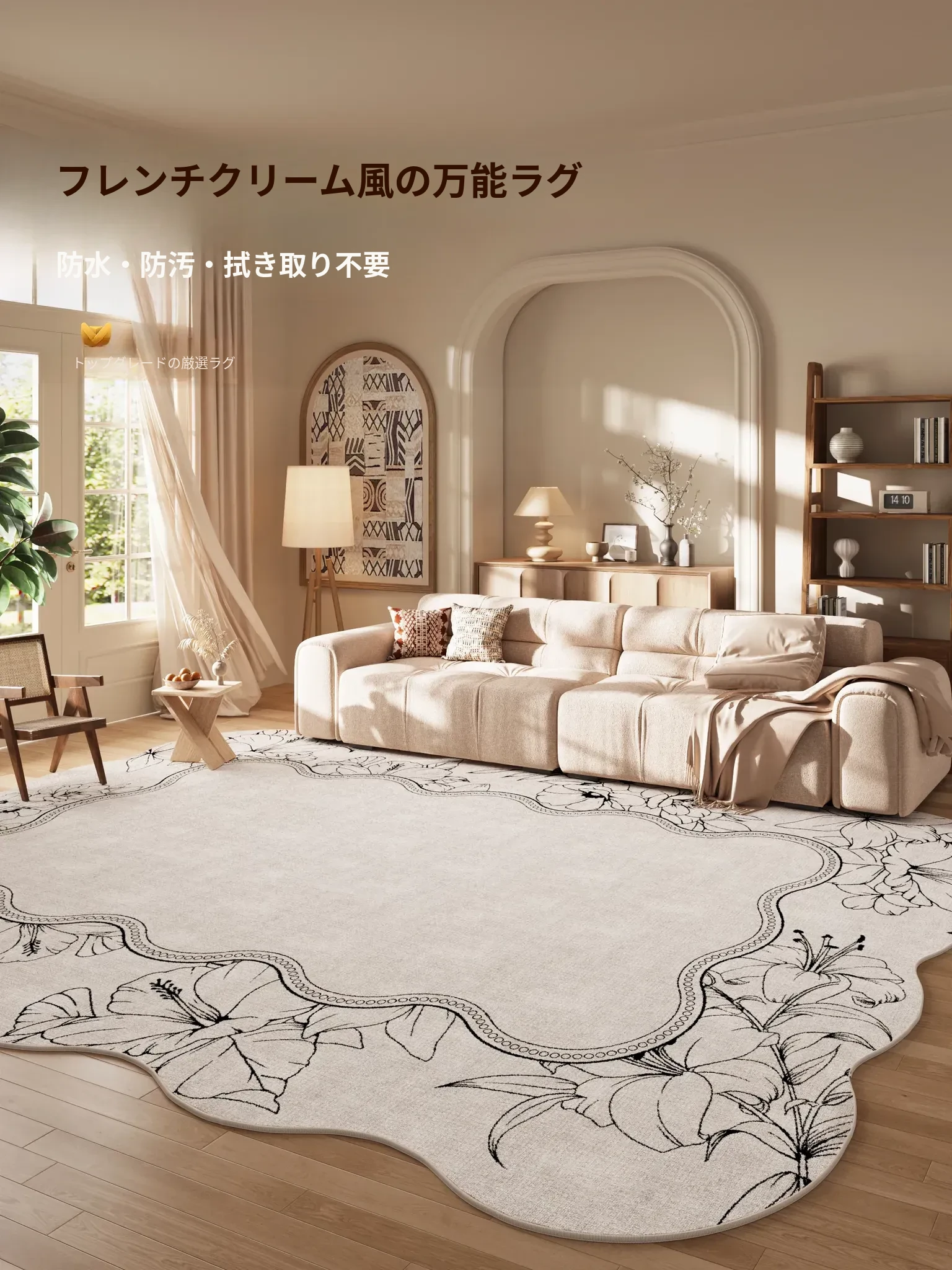 2025年新作!フランス風の洗えるラグ - リビングや寝室に最適!手間いらずの中古スタイル、ソファ用マットとしても完璧!お手入れ簡単でおしゃれなインテリアを演出!