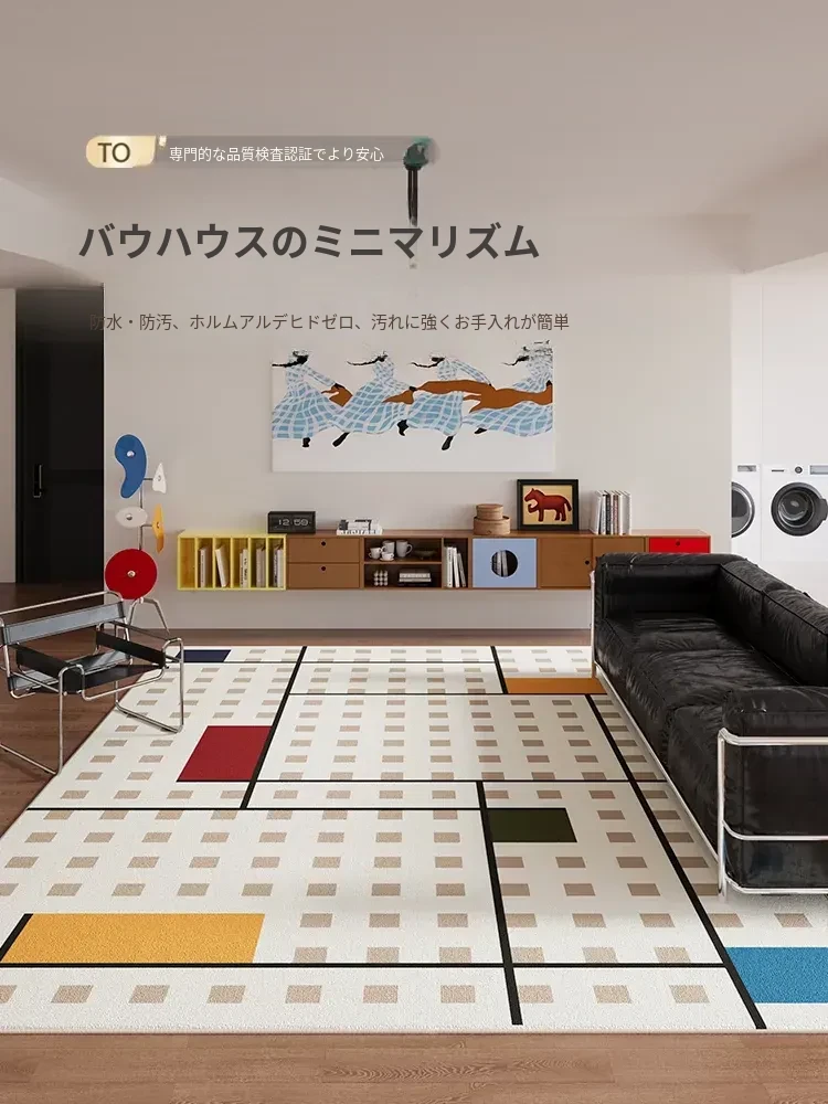 バウハウスデザインのヴィンテージスタイル高級ラグ!リビングルームやベッドルームに最適、掃除が簡単で撥水効果あり。ソファやテーブルの下にぴったりのカラフルなデザインで、お部屋をおしゃれに演出します!