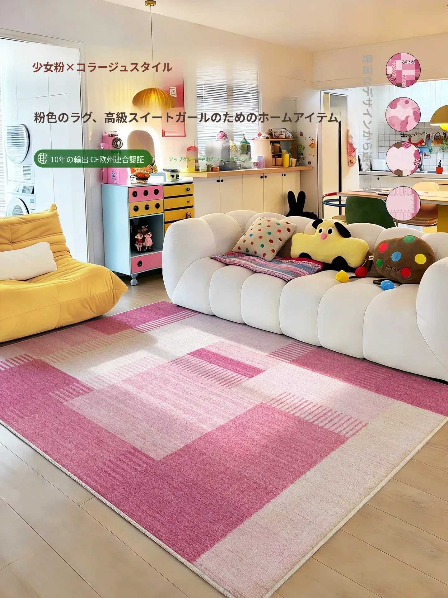 ピンクカーペット リビングルーム用クリーム風ソファ テーブル付き 寝室ベッドサイドマット 多幸感あふれるお部屋に最適 防水・汚れ防止機能付きマット