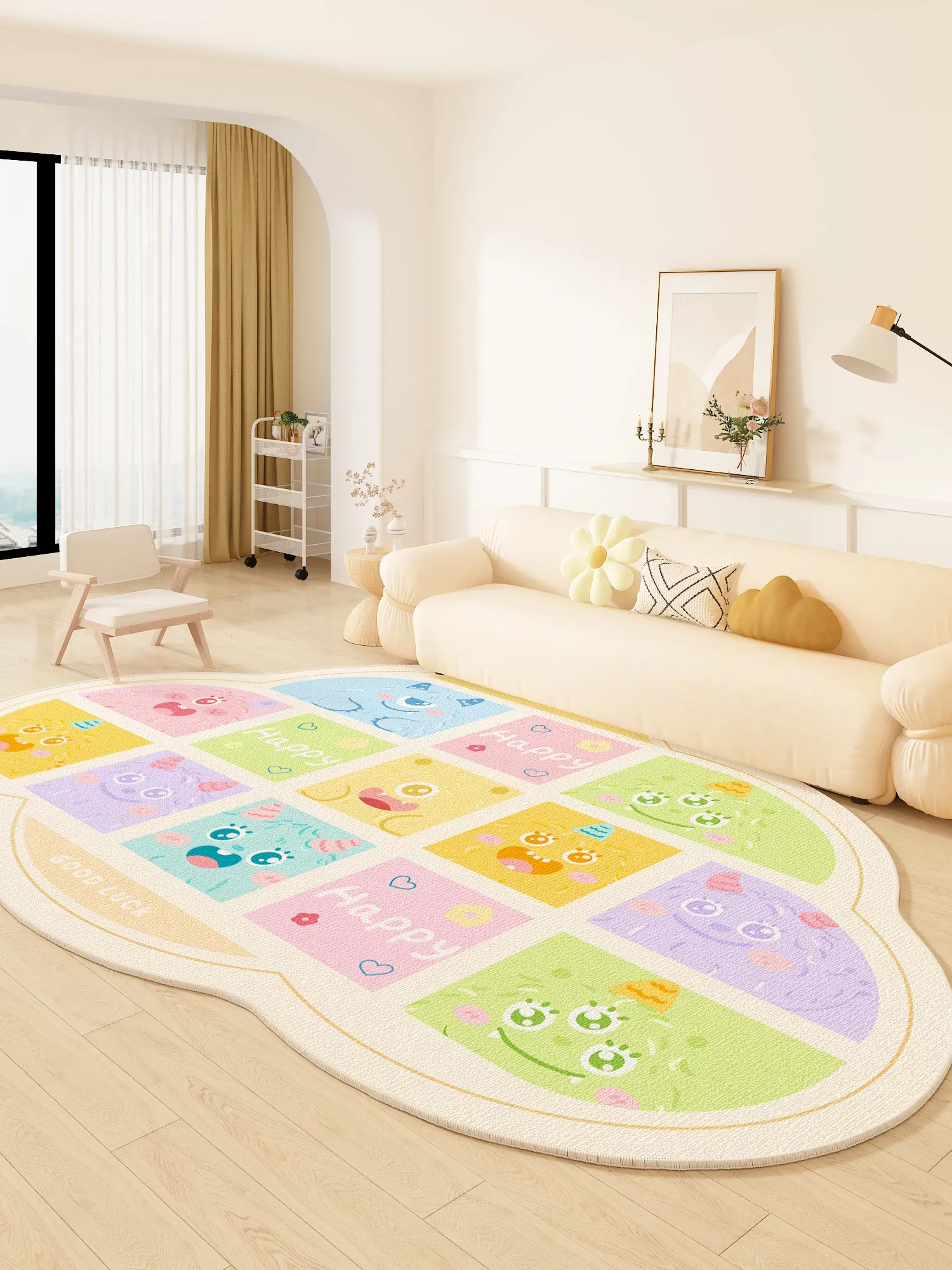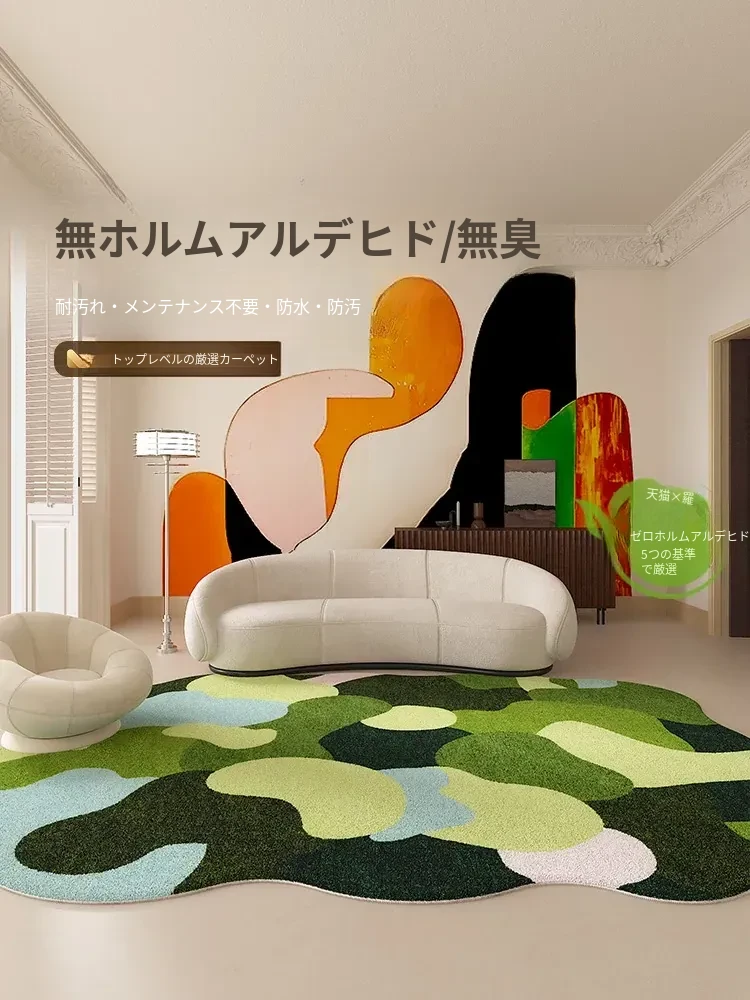 新作!防水・防汚のカラフルなカーペット!厚手でお手入れ簡単、リビングにぴったりの可愛いキャラクターラウンドマット。ソファに最適な異形デザインで、快適な空間を演出します!