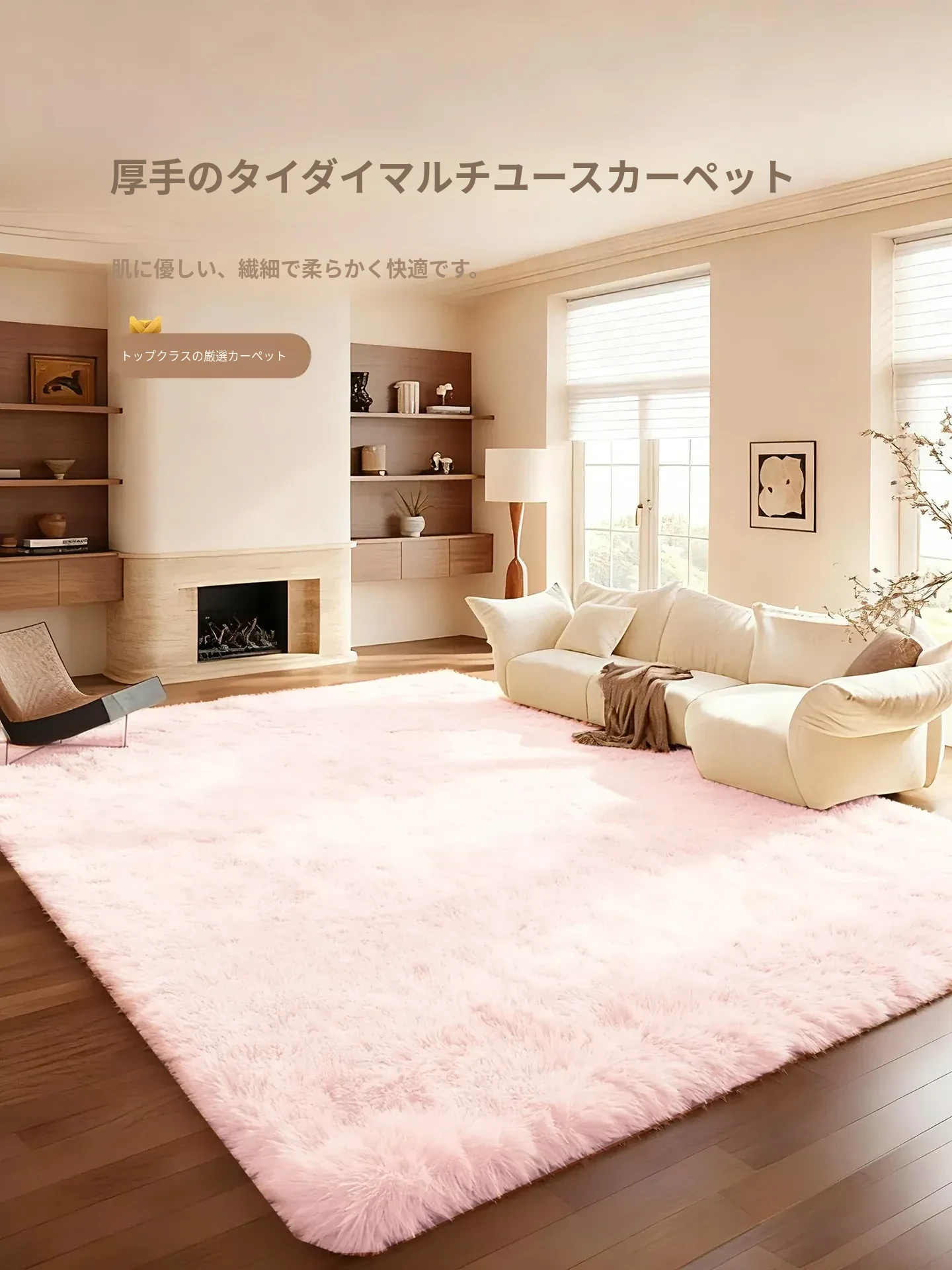 冬の暖かさを感じる!ピンクのふわふわラグ、リビングソファやベッドサイドにぴったり。クリーミーな風合いで、テーブルの下にも最適。新作の厚手デザインで、寒い季節も快適に過ごせます。