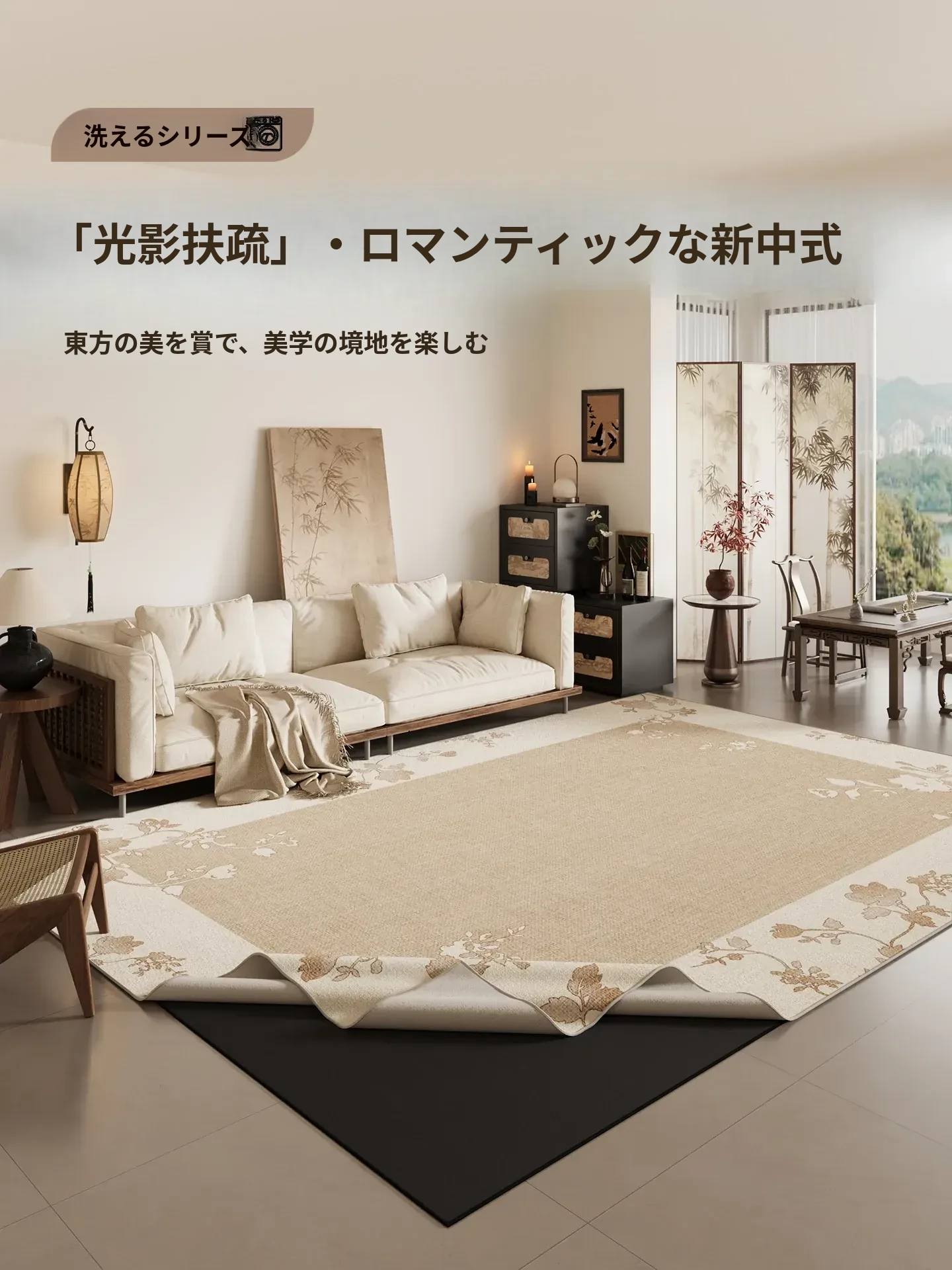 2025年新作!中式可拆洗カーペット - リビングルームに最適なヴィンテージスタイル!ソファやテーブルと調和するデザインで、洗濯機で簡単に洗える。寝室のベッドサイドにもぴったりな一品!
