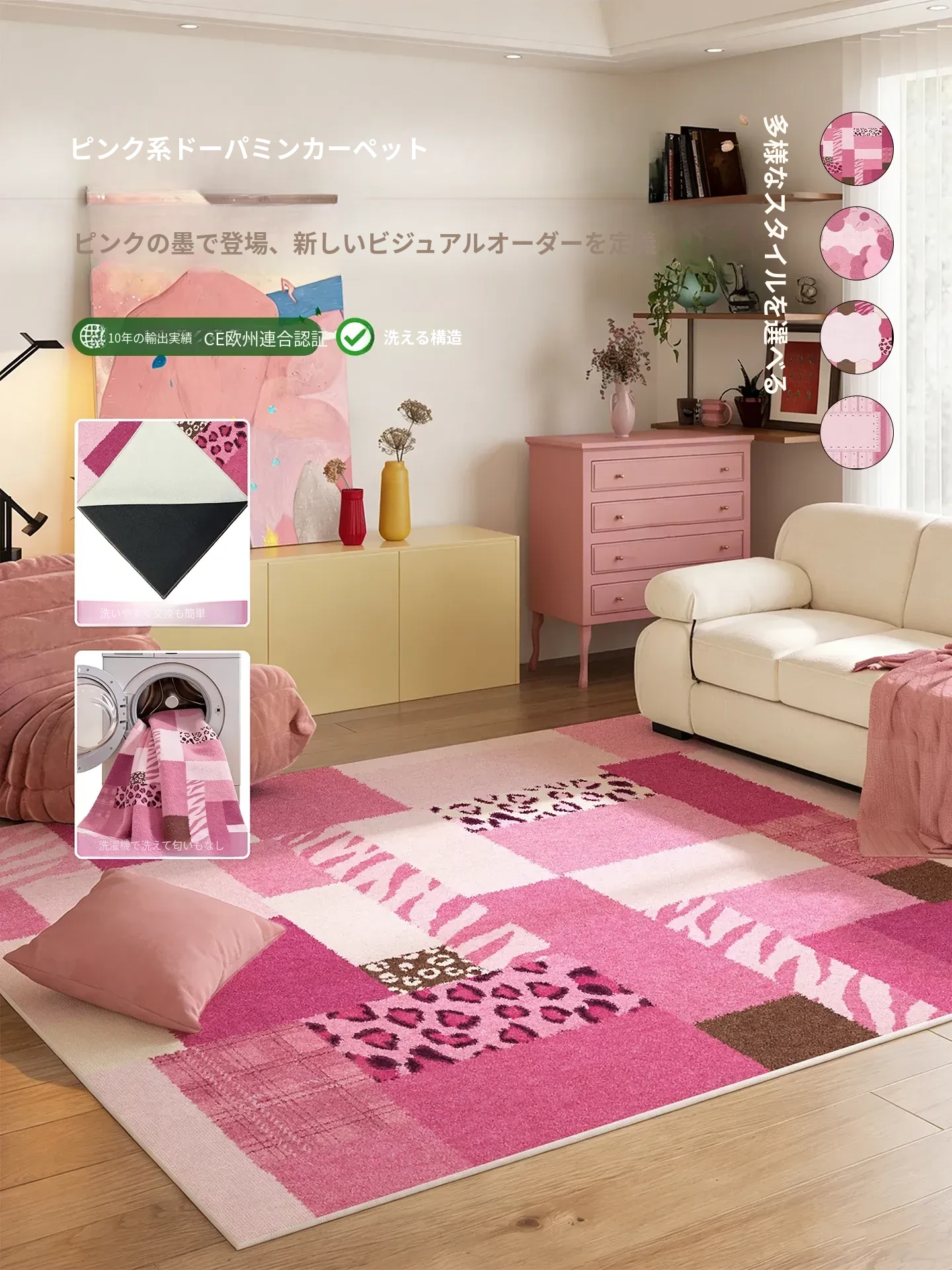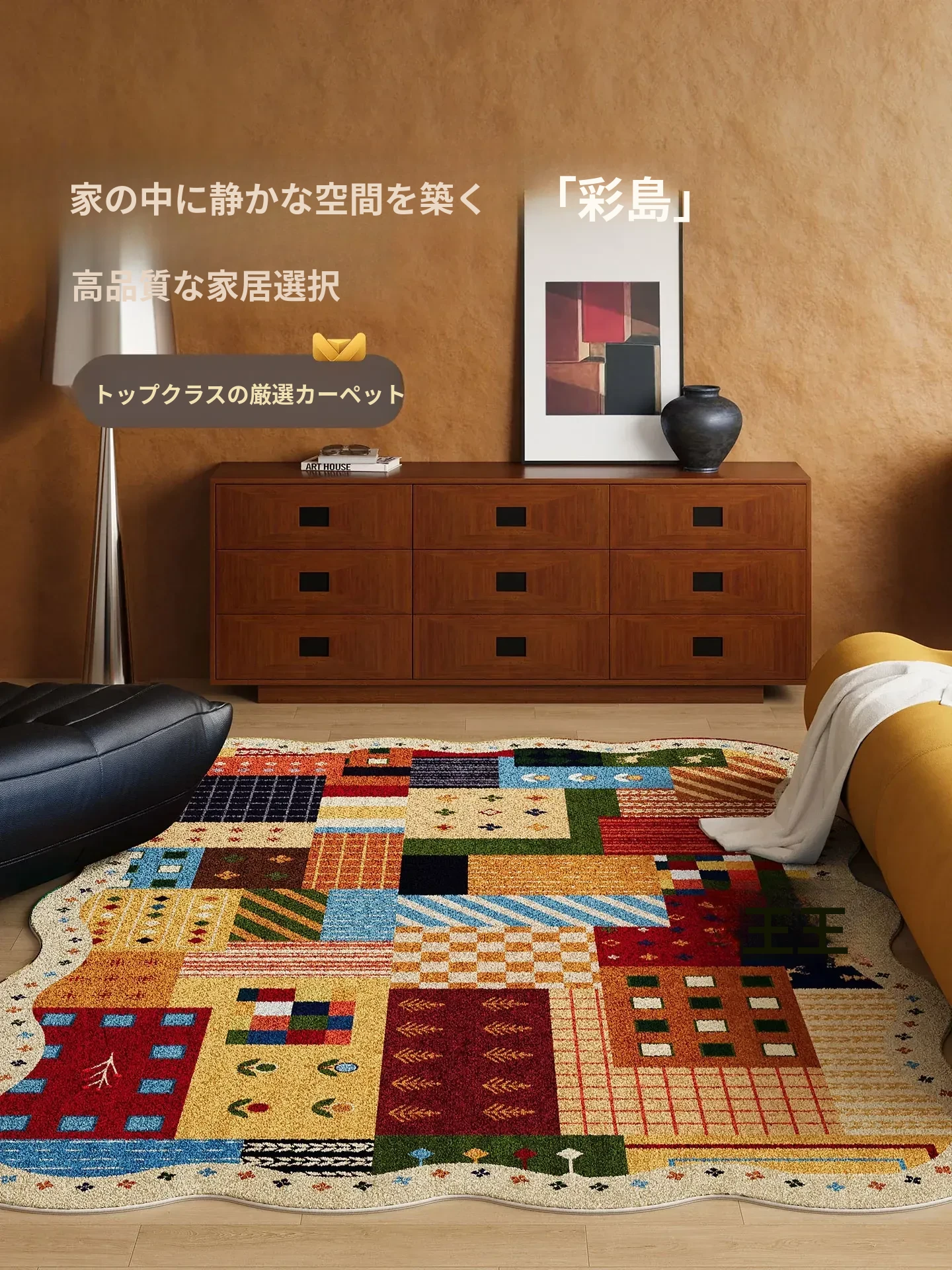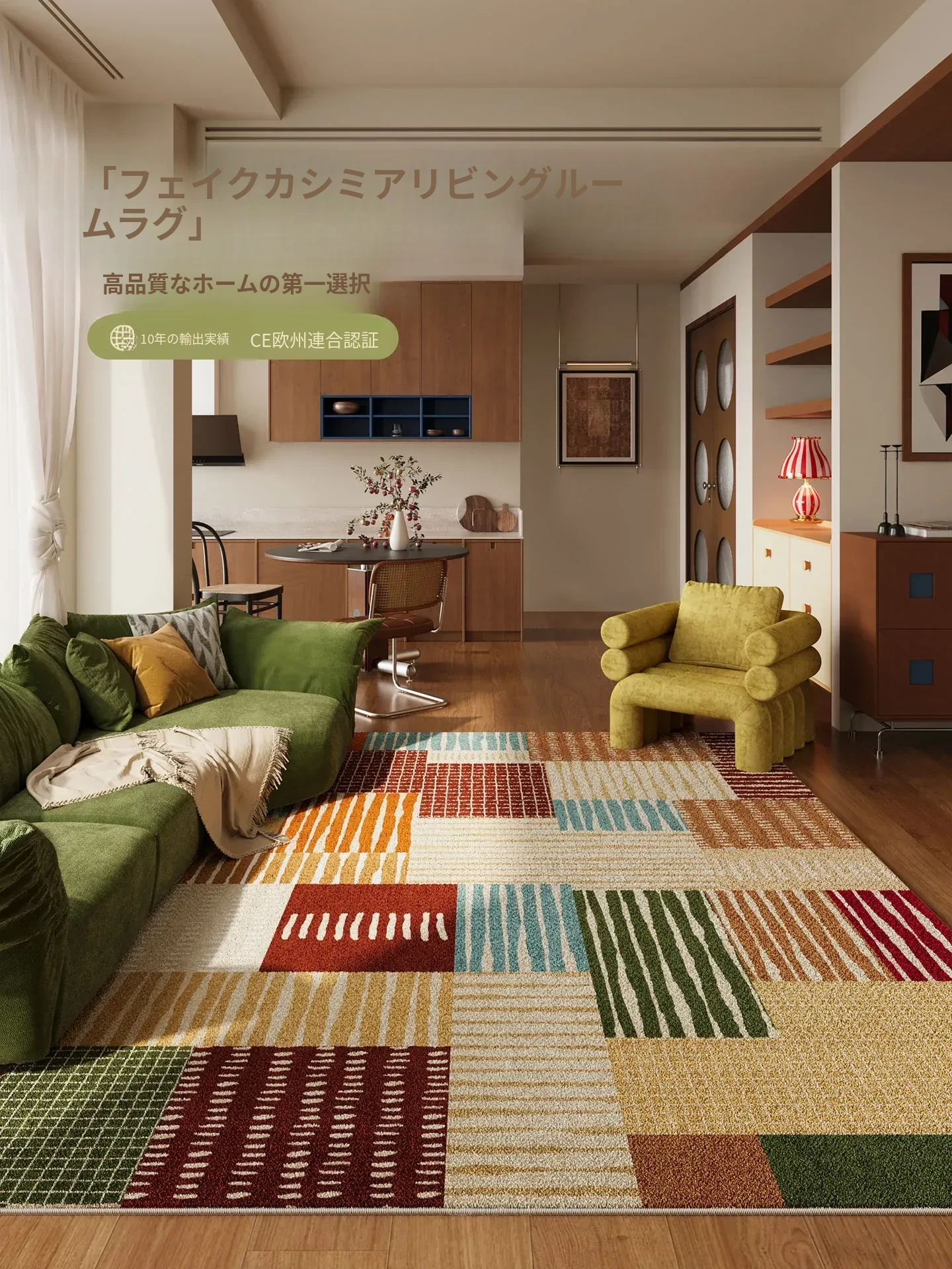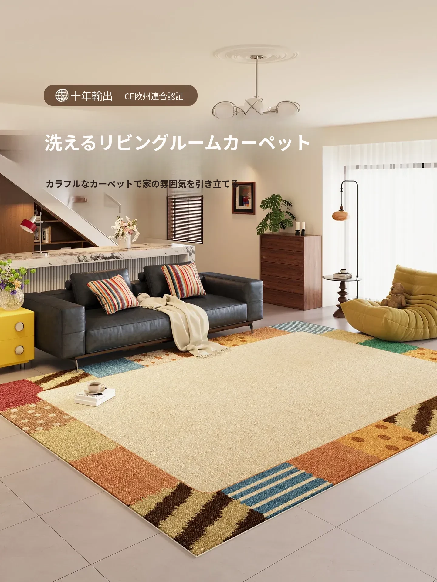 洗えるダブルレイヤー・取り外し可能なカーペット|リビングにぴったりなドーパミン風の高級感!おしゃれな中古風デザインの寝室・ソファ用マットで、心地よい空間を演出します。