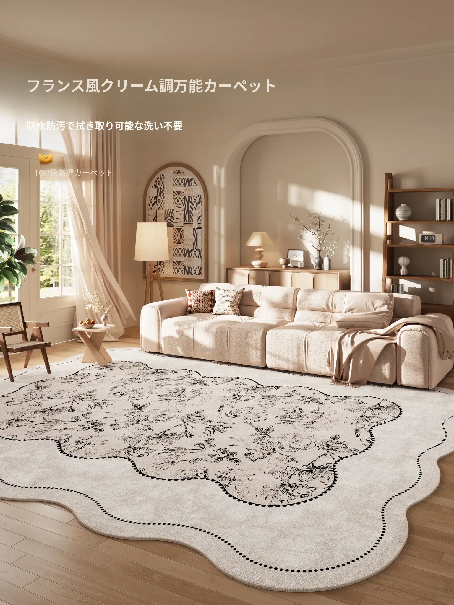 おしゃれな異形カーペット!手間いらずのリビング用、ソファやフレンチスタイルのティーテーブル、ベッドサイドやクローゼットにもぴったり。古風でクリーミーなデザインが、あなたの空間を華やかに演出します!