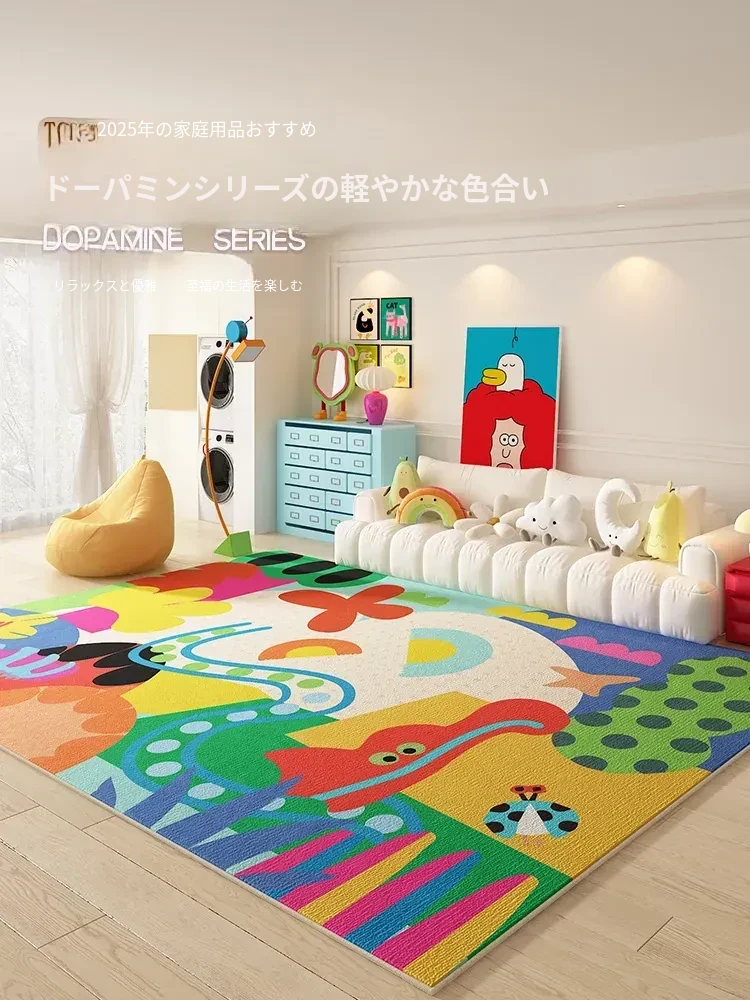 カラフルなリビングルーム用ラグ - ドーパミンアートデザイン、ソファ防汚、滑り止め付き、新しい防水仕様、上質な寝室やティーテーブルに最適。おしゃれで快適な空間を演出します!