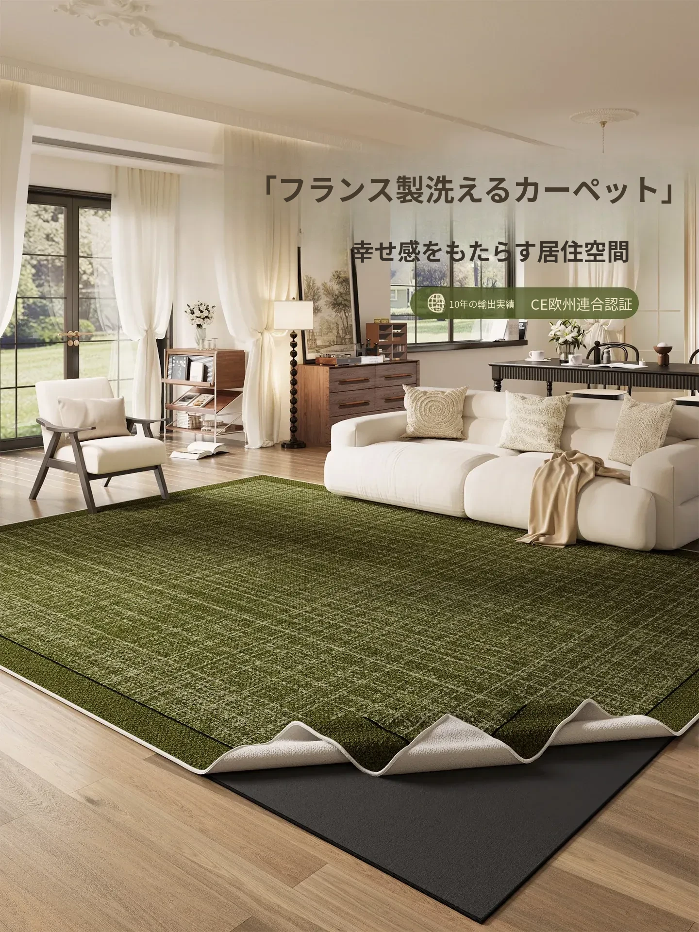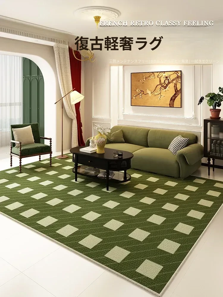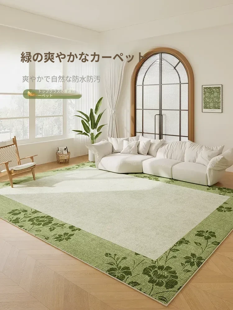 フランス風グリーンカーペット - アメリカンスタイルのリビング用、洗浄不要でお手入れ簡単!防水・防汚のマット、ソファやテーブルにぴったりの新作です。おしゃれな空間を演出します!