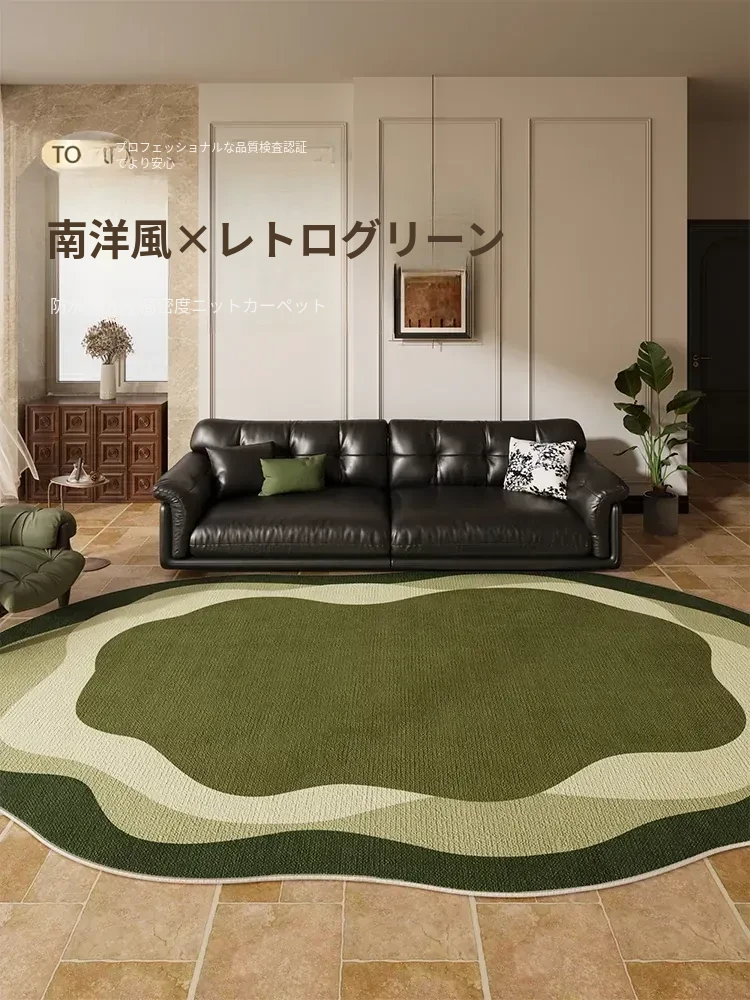 レトロスタイルの防水・防汚リビングラグ 大面積用ソファ・テーブル用滑り止めマット グリーンカラーでおしゃれな空間を演出!掃除も簡単で、耐久性抜群の一品です。