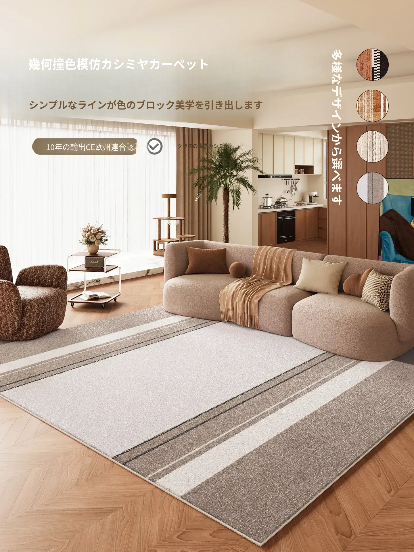 ラグジュアリーなシンプルデザインのリビング・ベッドルーム用カーペット!耐汚れ・防水・防音機能付き、滑り止め効果もあり、ソファやテーブルの下に最適な新作マット。おしゃれな空間を演出します!
